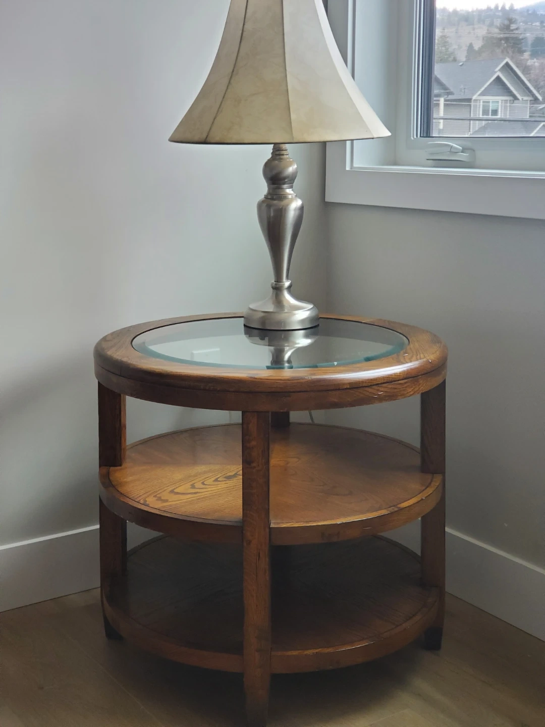 Must go! Round Oak Side Table with Glass Top