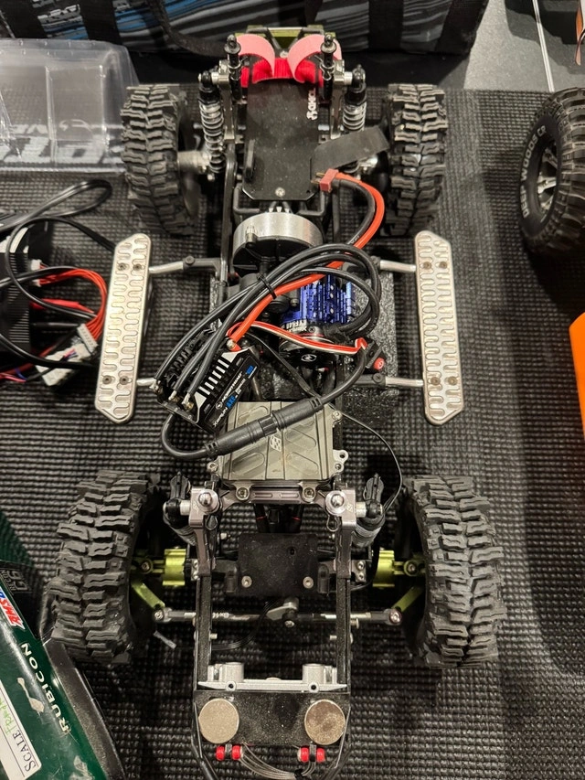 Traxxas TRX 4 K5 blazer (body is new) and Axial SCX10. Both come with what you see, and include extra wheels, parts, batteries, etc. Selling them together for $1500. Price is firm.