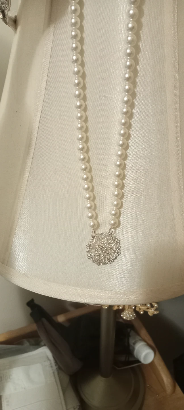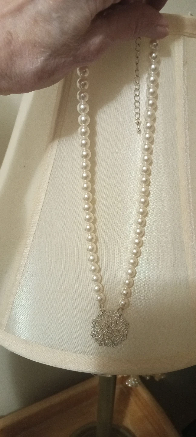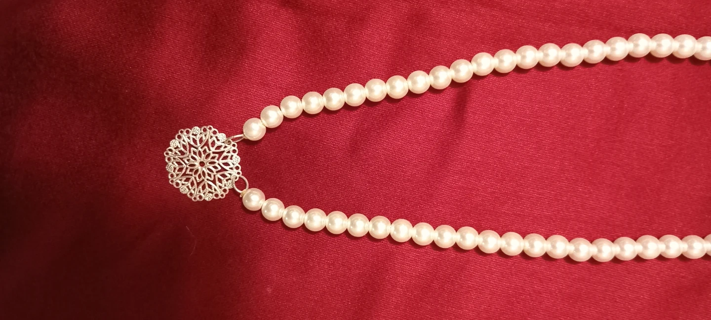 Selling a lovely pearl necklace featuring a delicate snowflake pendant. It's in great condition and would make a beautiful addition to any outfit. The pearls have a nice shine and the pendant adds a touch of elegance