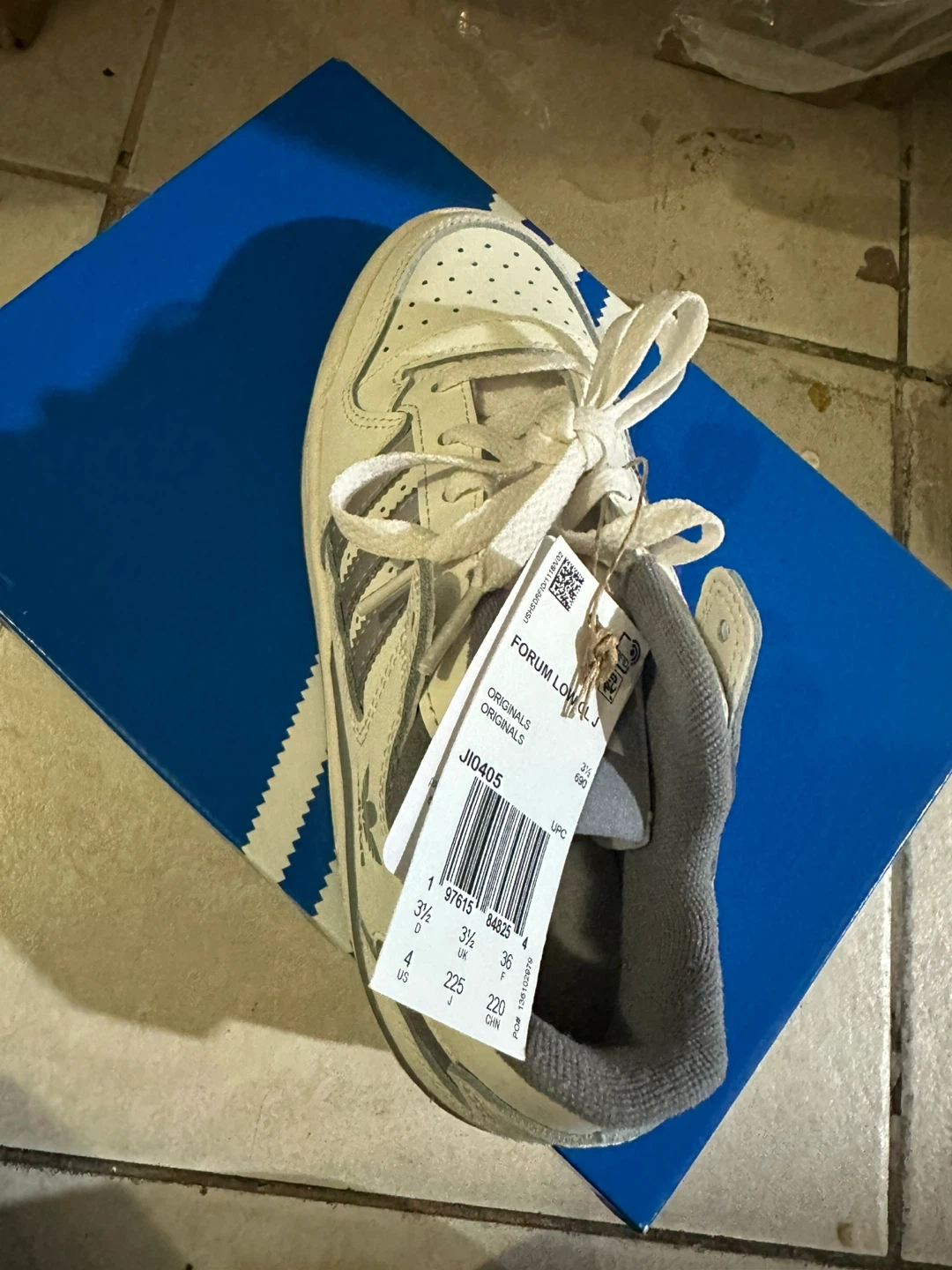 10Selling a pair of Adidas Forum Low QL J sneakers in a youth size 4. They are in great condition and come with the original box! The color is a stylish combination of white and gray, perfect for any casual outfit