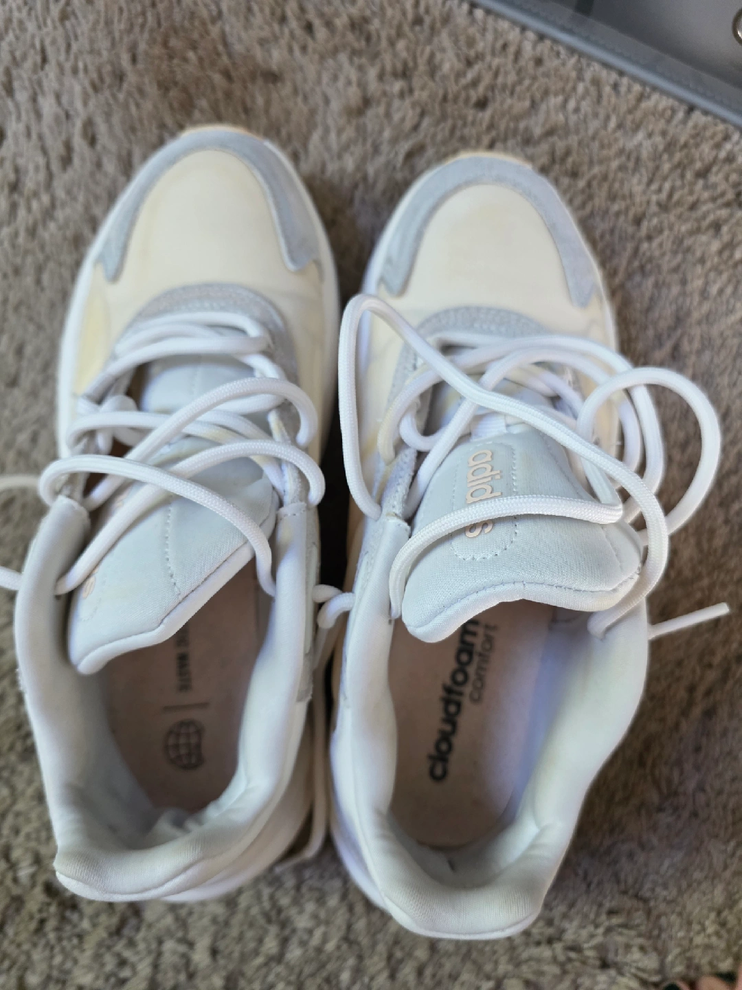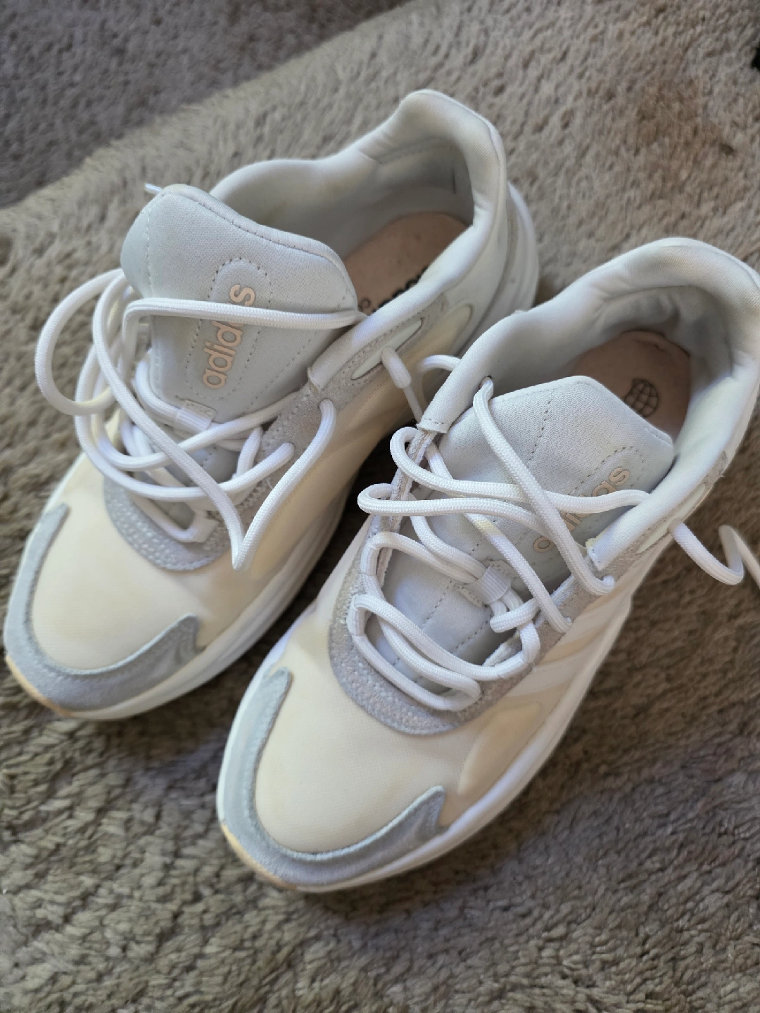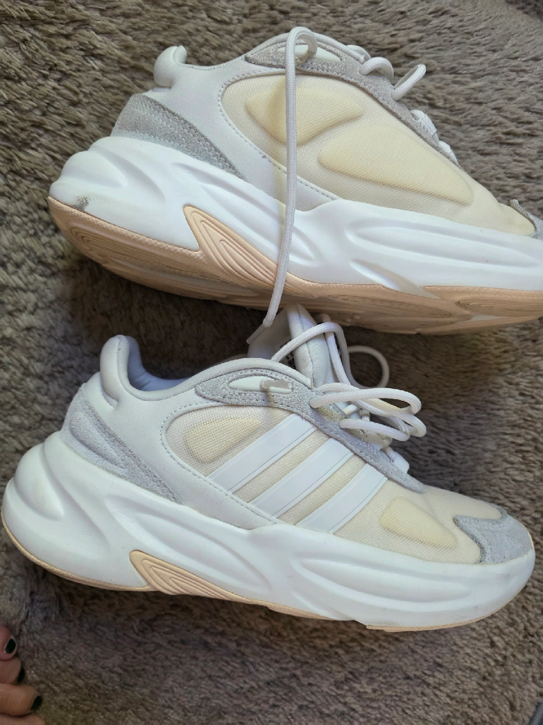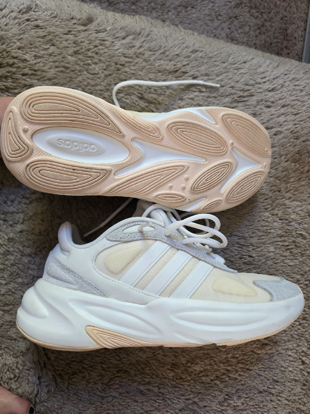 Selling a pair of Adidas Oznova women's shoes in US size 8. These sneakers feature cloudfoam comfort and are made with a blend of materials including suede. The manufacturing date is 2022 September. They are in good condition and ready for a new home!