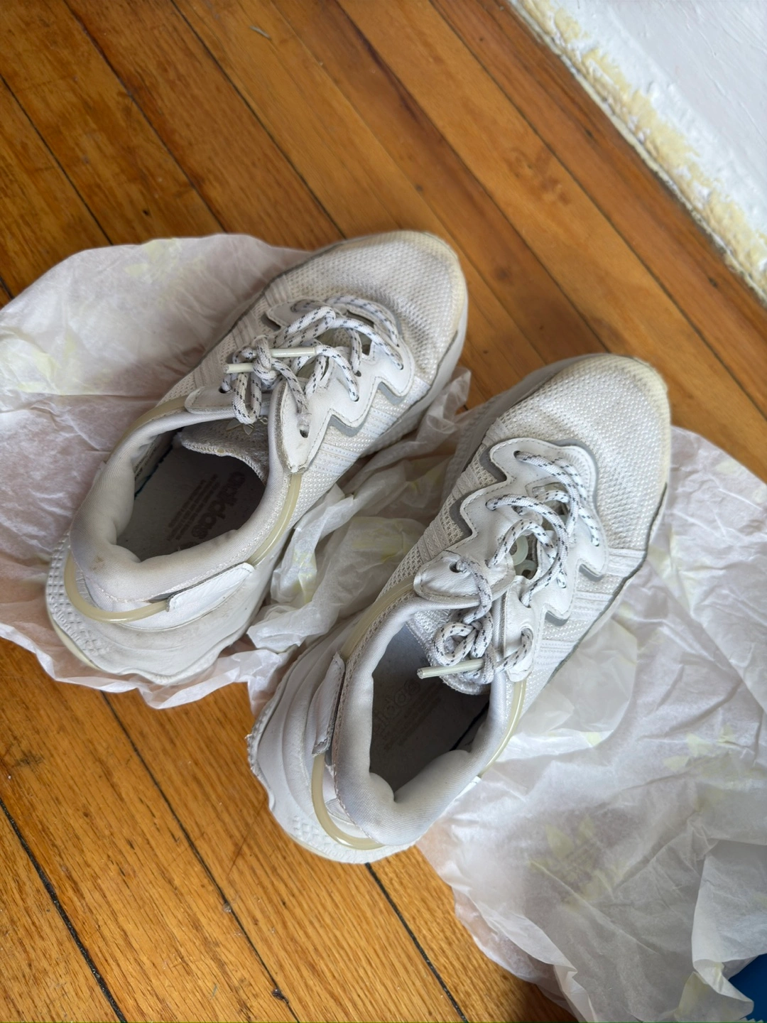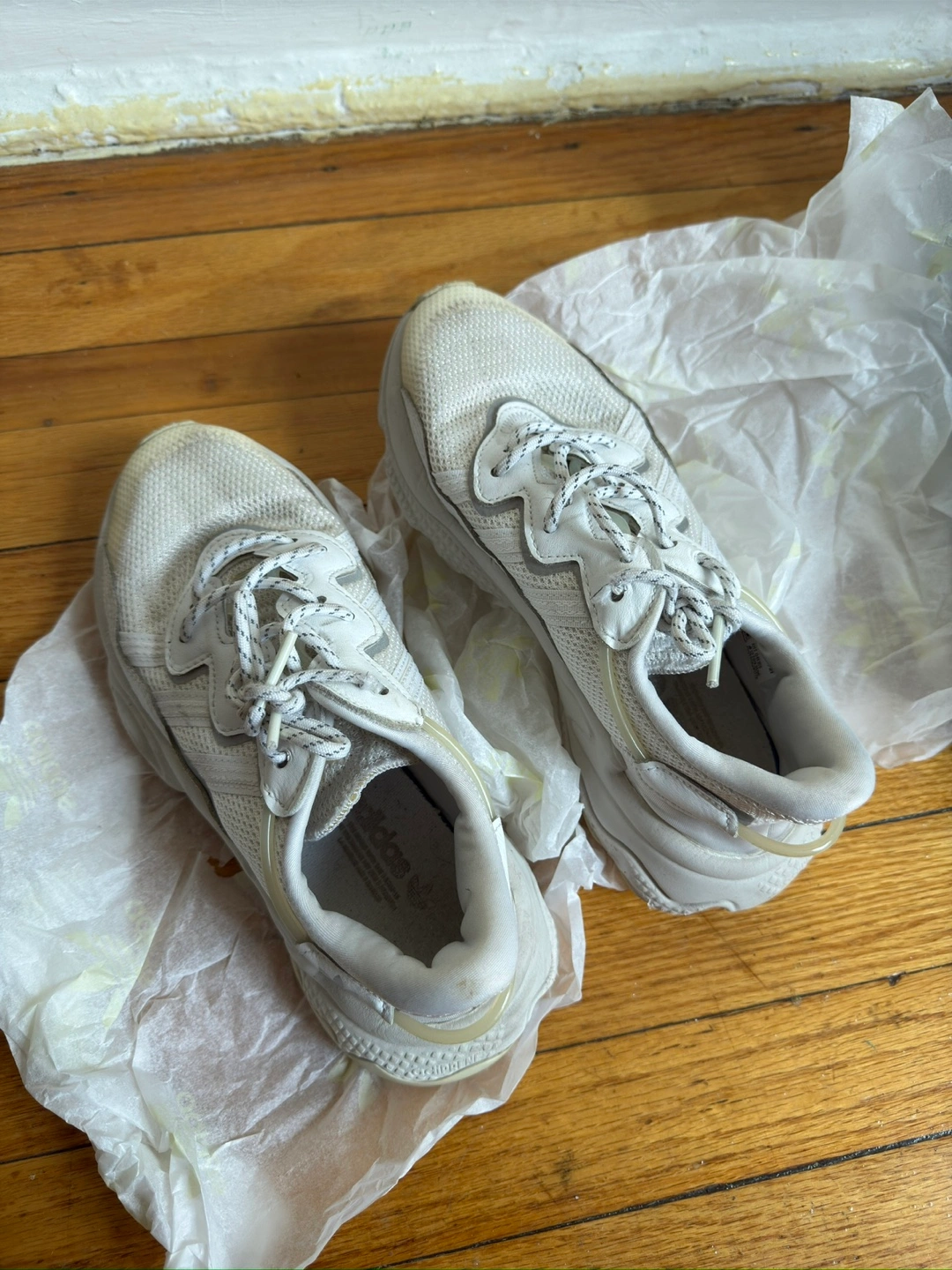 51Selling a pair of Adidas Ozweego sneakers in white! They have been worn but are still in good condition. The original box is included.