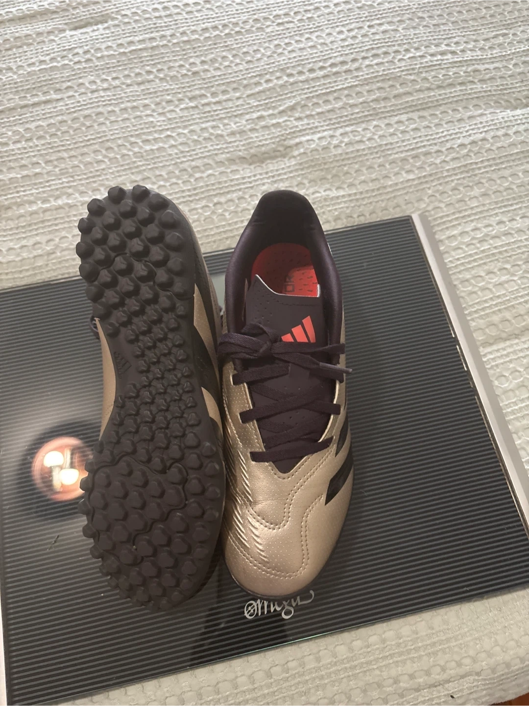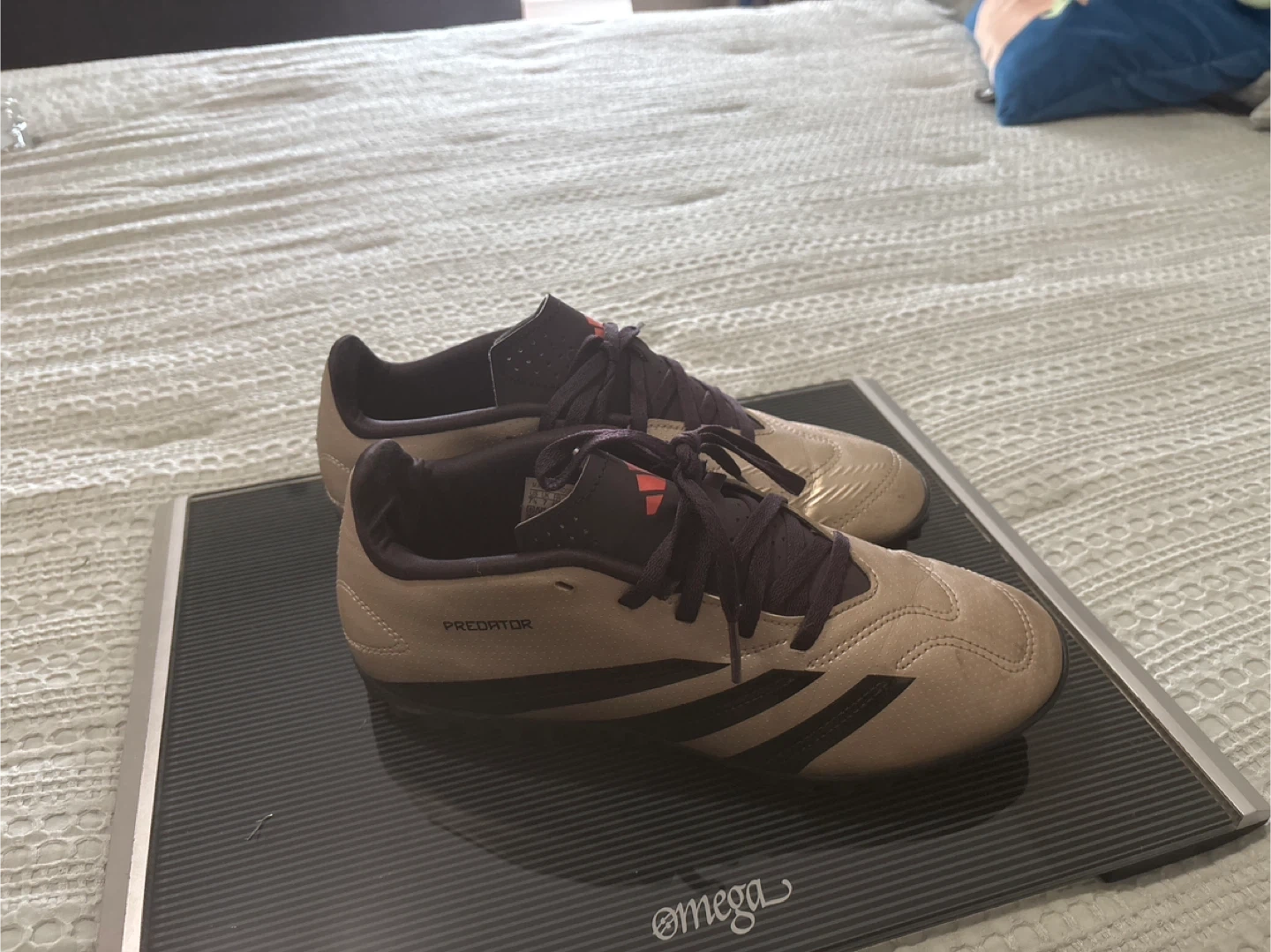 Selling a pair of Adidas Predator soccer unisex cleats size Women 7.5 Men 6 . They are in good condition and ready for the field! They feature the classic three-stripe design and a durable sole for excellent traction