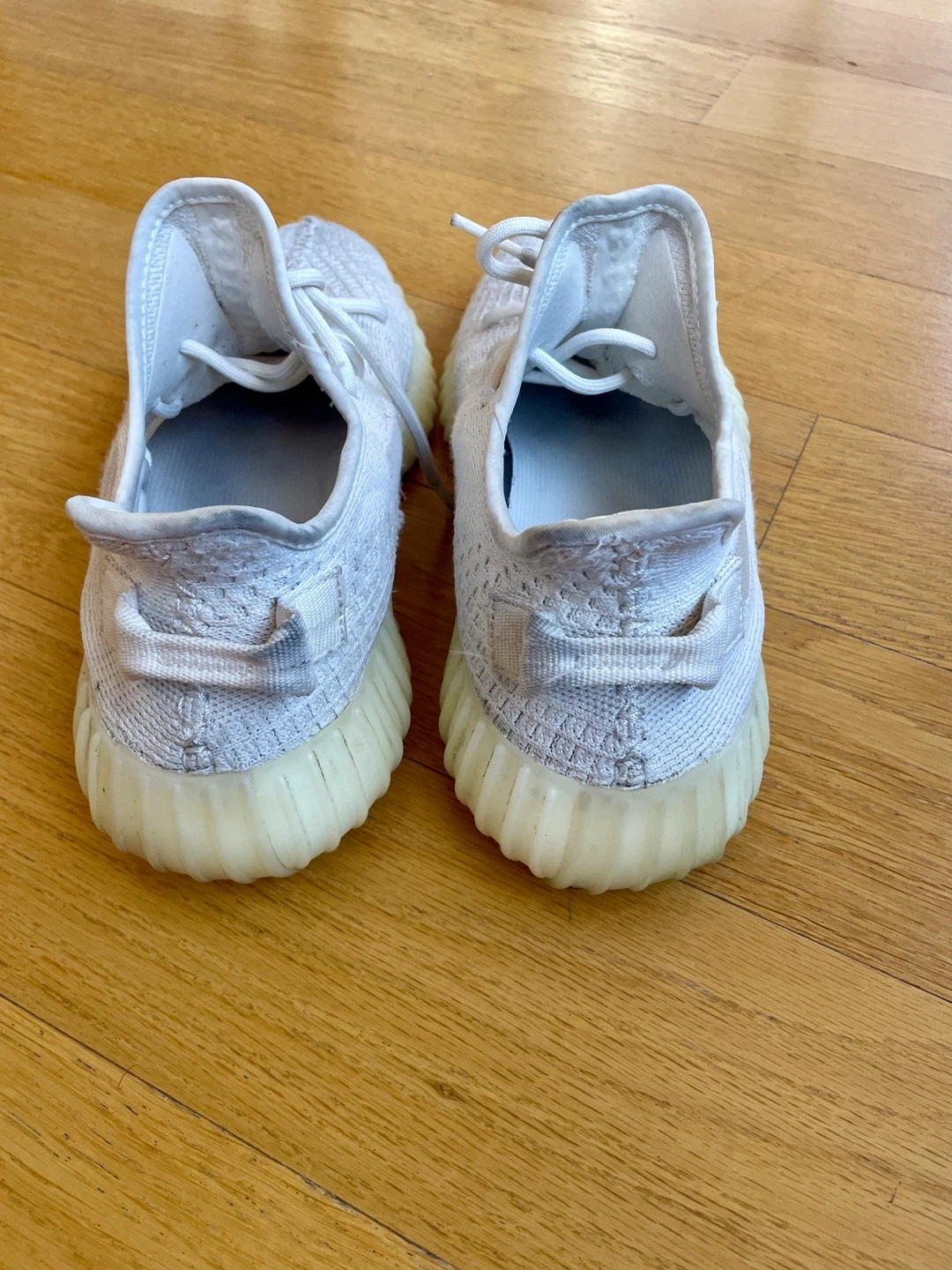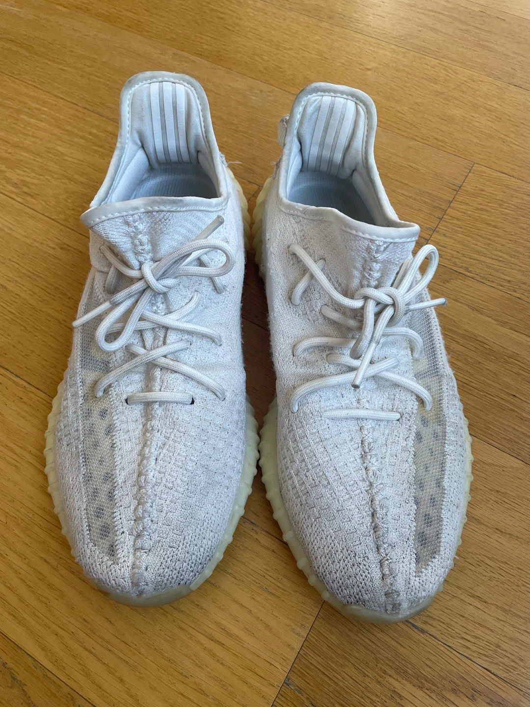 Selling a pair of Adidas Yeezy Boost 350 V2 in the Cream Triple White colorway. They are in used condition. The size is US 11.