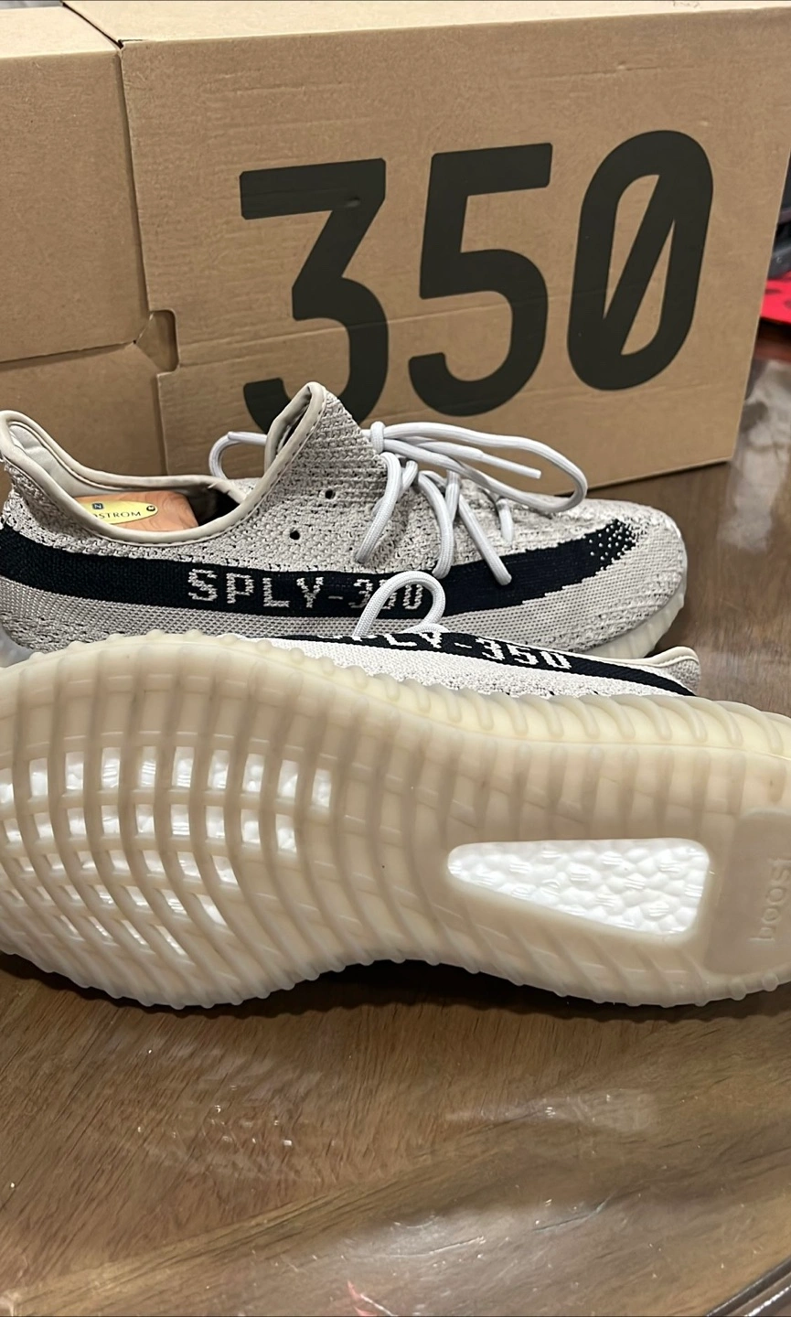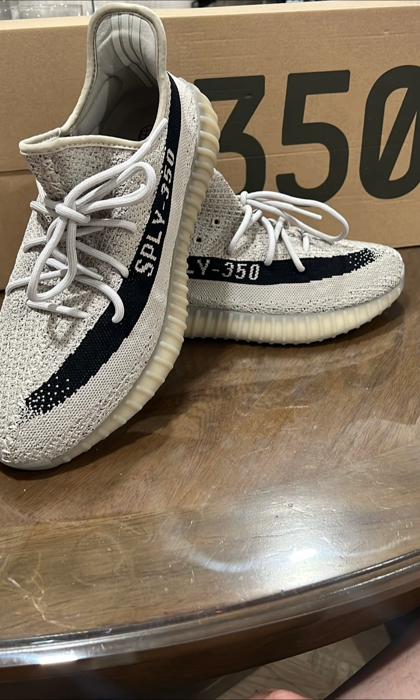 Selling a pair of Adidas Yeezy Boost 350 V2 sneakers. They are in great condition and come with the original box. The shoes feature the iconic Zebra colorway and the signature Boost sole for ultimate comfort. Size is US 10.