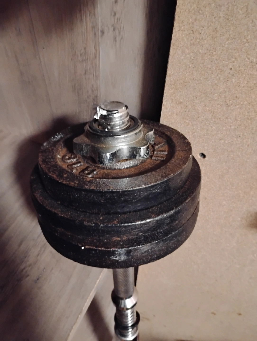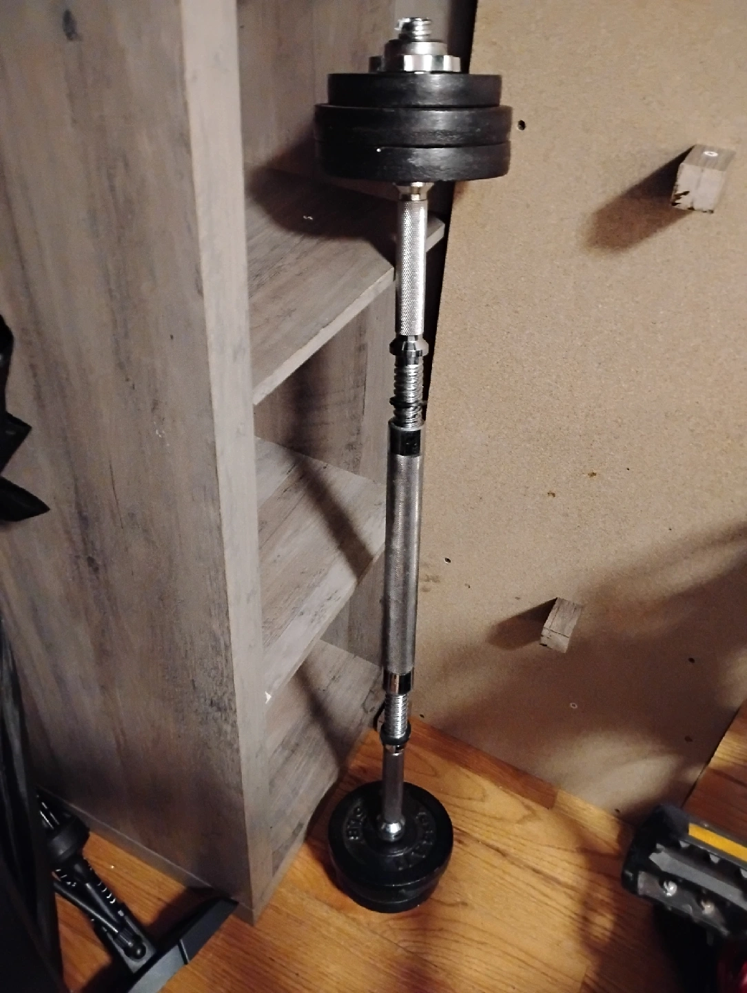 Selling an adjustable dumbbell set. It's in used condition with some signs of wear.