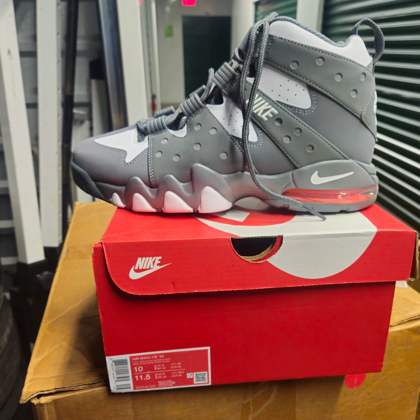 Nike Air Max CB '94 basketball shoes in a grey and white colorway. Men's size 10. Includes original box.