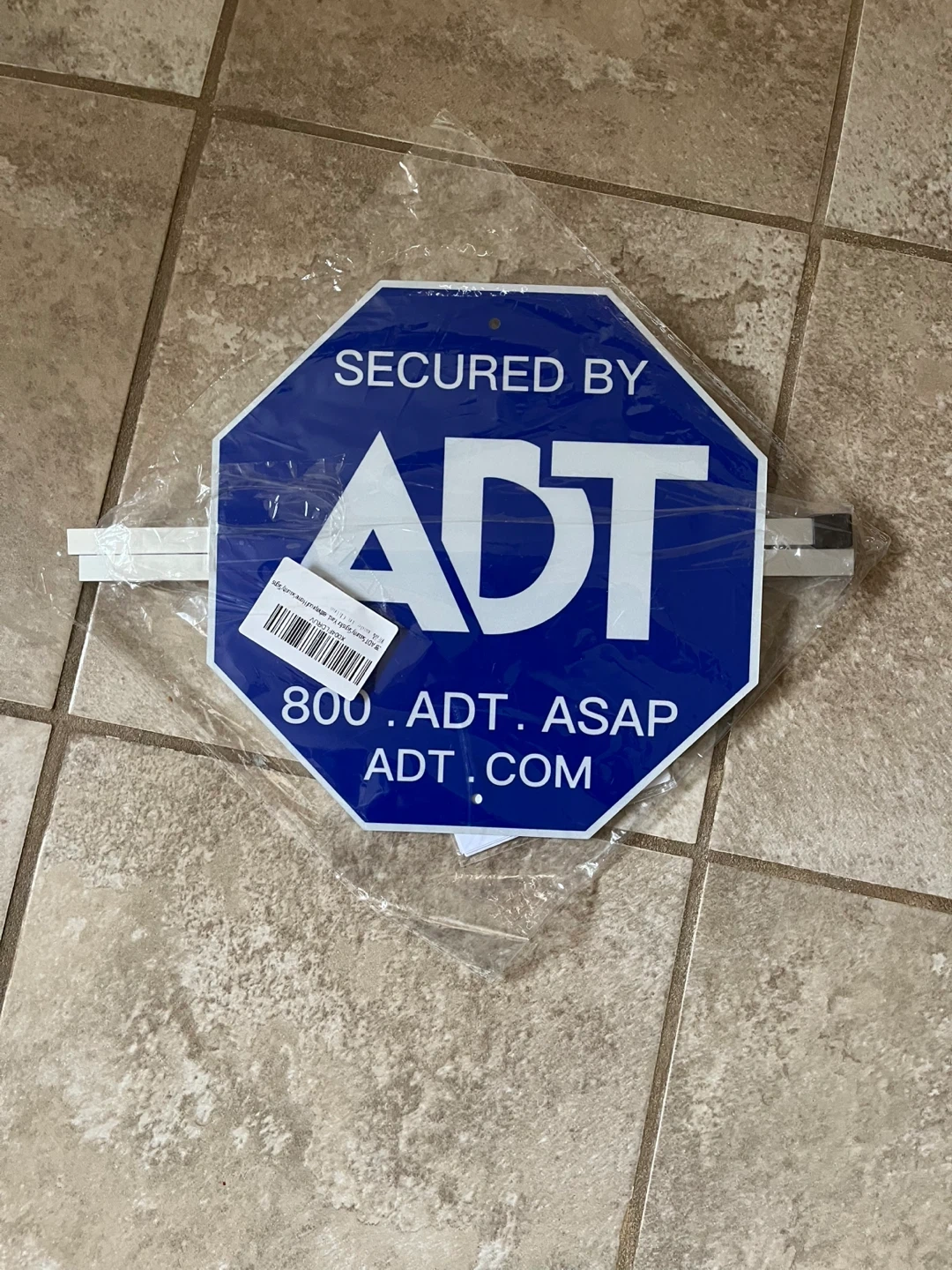 Selling a brand new ADT security sign, still in its original packaging! This sign is a great way to deter potential intruders and let everyone know your property is secured by ADT. It comes with the mounting hardware.