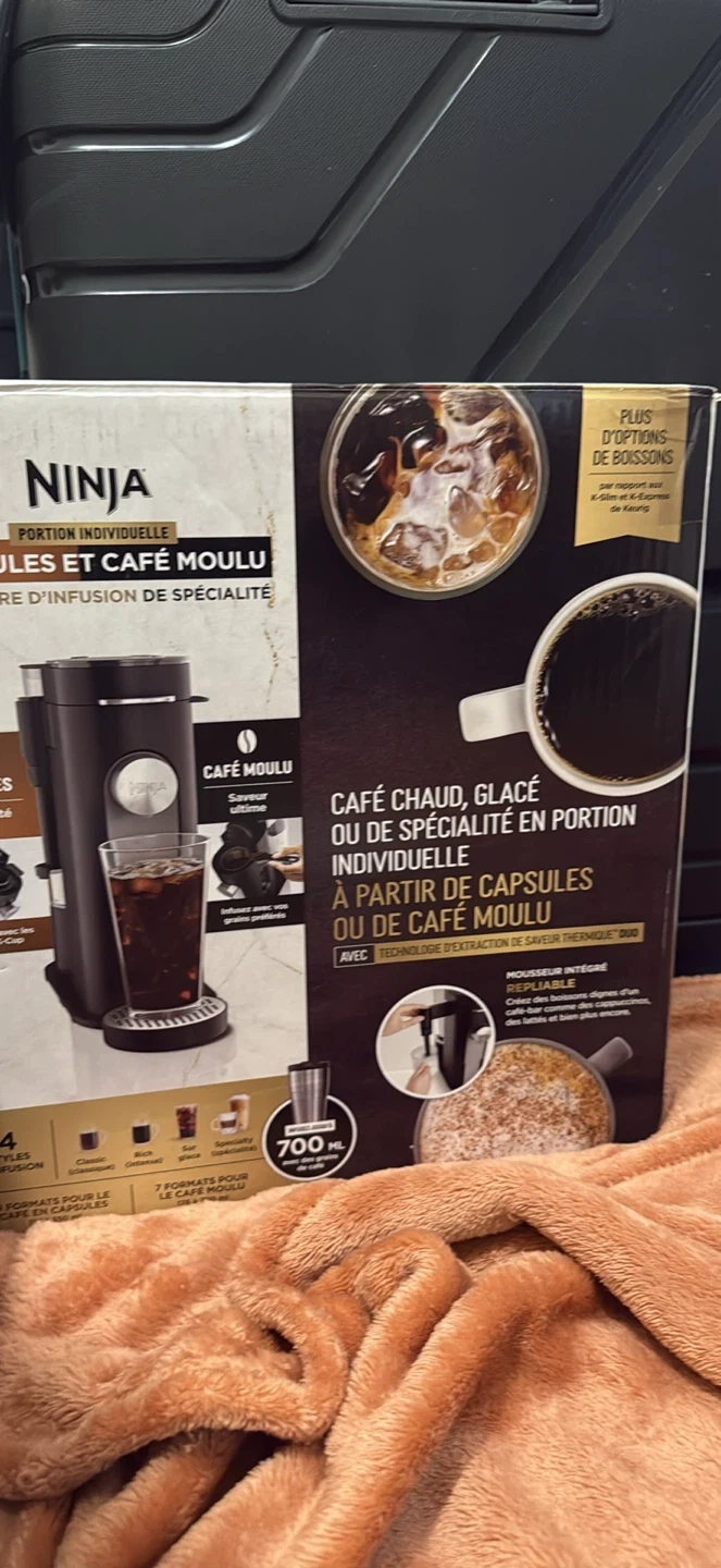 Selling a Ninja Single-Serve Coffee & Pod Brewer! It's in great condition and comes with the box. This machine can brew both hot and iced coffee using either coffee grounds or pods. It also features an easy-to-use display to select your preferred brewing method, size, and style