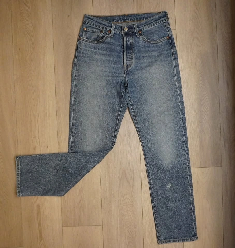 Classic Levi’s 501s with a beautiful natural faded blue wash. These have that real vintage denim look — soft, broken-in, and perfectly worn without being destroyed. High-rise waist with a timeless straight-leg fit that works on every body.