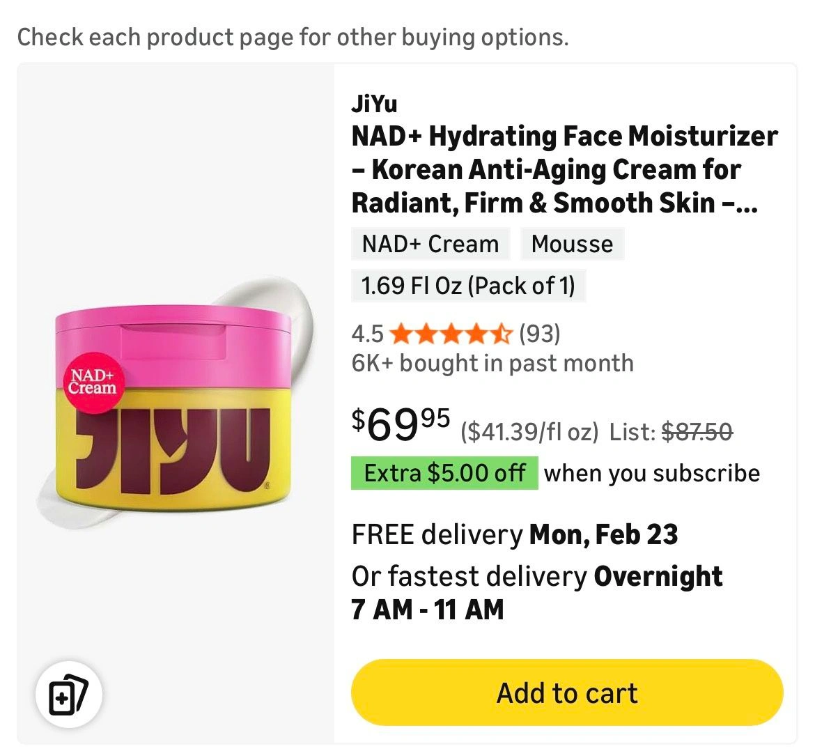 JiYu NAD+ Hydrating Face Moisturizer – Korean Anti-Aging Cream for Radiant, Firm & Smooth Skin – Deeply Hydrating & Brightening Daily Moisturizer Cream for Face and Body, All Skin Types – 50 ml. Feel free to message if you have any questions!