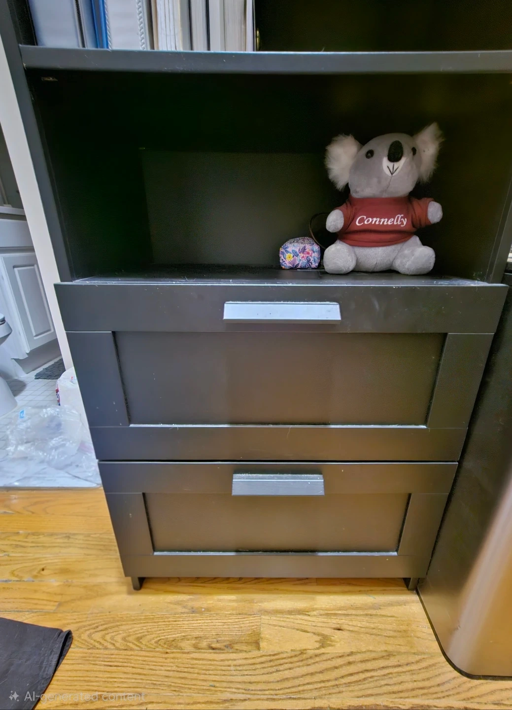 Rarely Used IKEA bookcase! Black color still vibrant with no scratches or fading. Adjustable shelves and two deep drawers at the bottom. There is a hook installed on the right side (hung small photo frame). 24 x 14 x 75 inches.