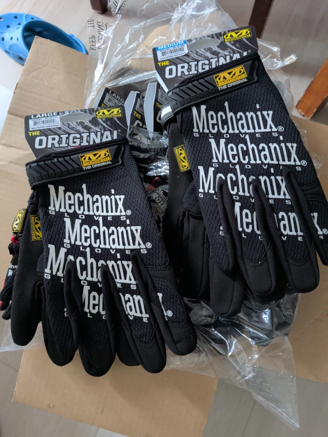 Selling a pair of Mechanix 'The Original' work gloves. One pair is size Large and the other is Medium. Great for various tasks! Buy 2 for 40 and get one half off... Comes with a key chain.or by the box of 7 for 240