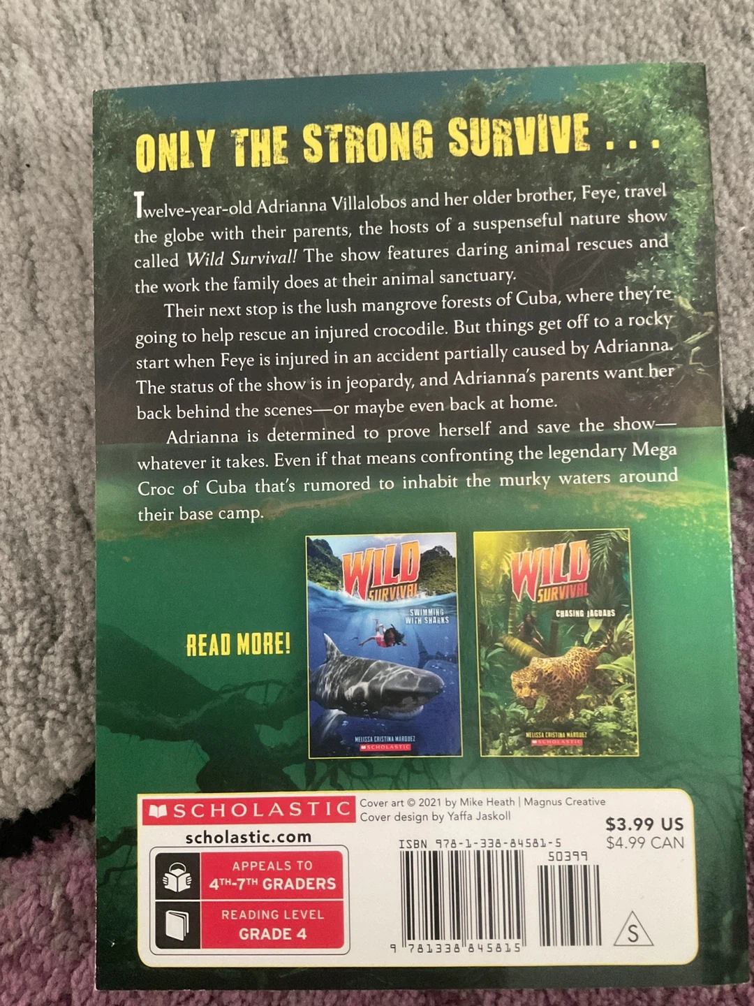 This Scholastic book, Wild Survival: Crocodile Rescue!, is written by Melissa Cristina Márquez. It's part of a series about animal rescues and adventures. Geared for readers in grades 4-7.