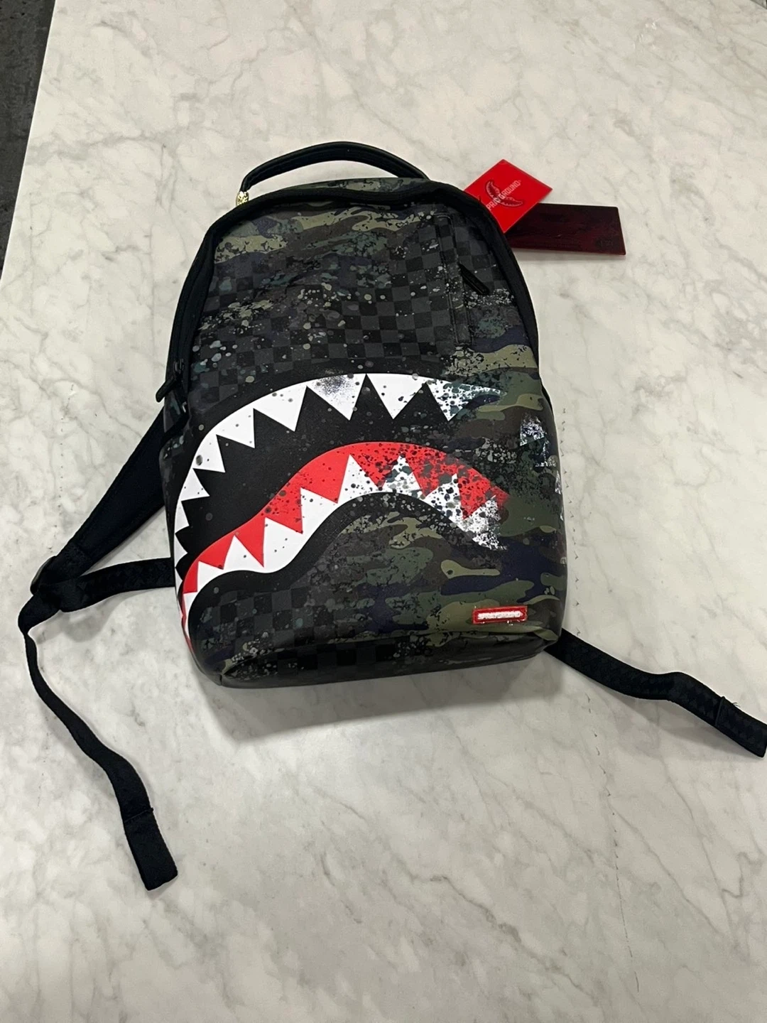 Selling a Sprayground backpack in excellent condition! It features a cool camo shark design. Perfect for school, travel, or everyday use. The backpack is in great shape and ready for a new owner