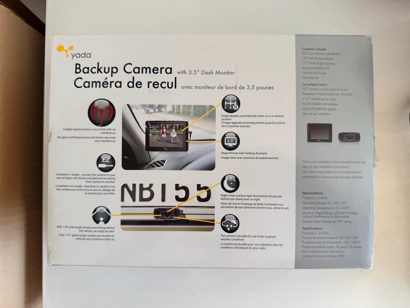 Yada Backup Camera with 3.5" Dash Monitor-Open Box
