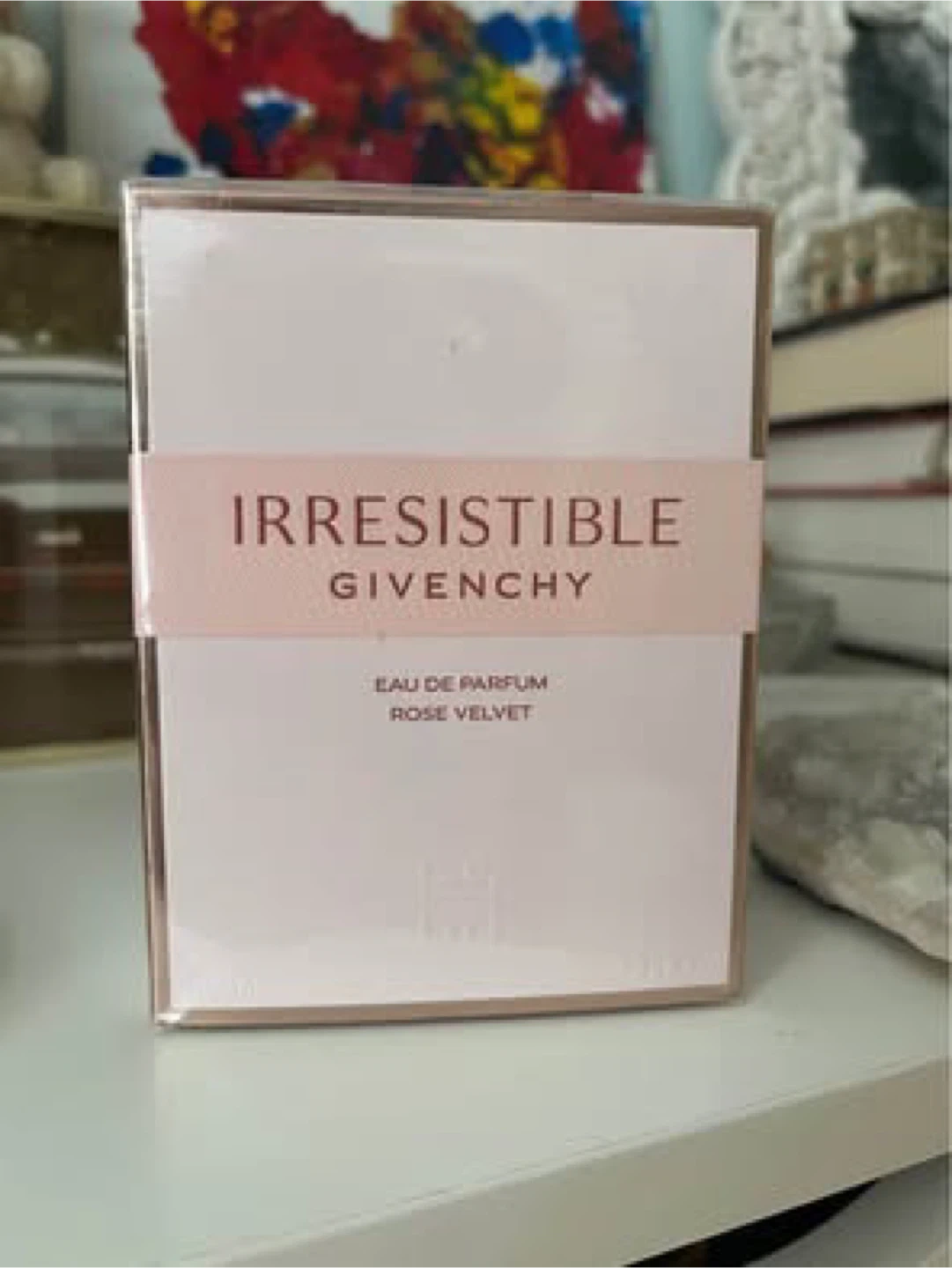 This is a new, unopened bottle of Givenchy Irresistible Eau de Parfum Rose Velvet. It's a floral woody musk fragrance. The scent features notes of rose and cedarwood.