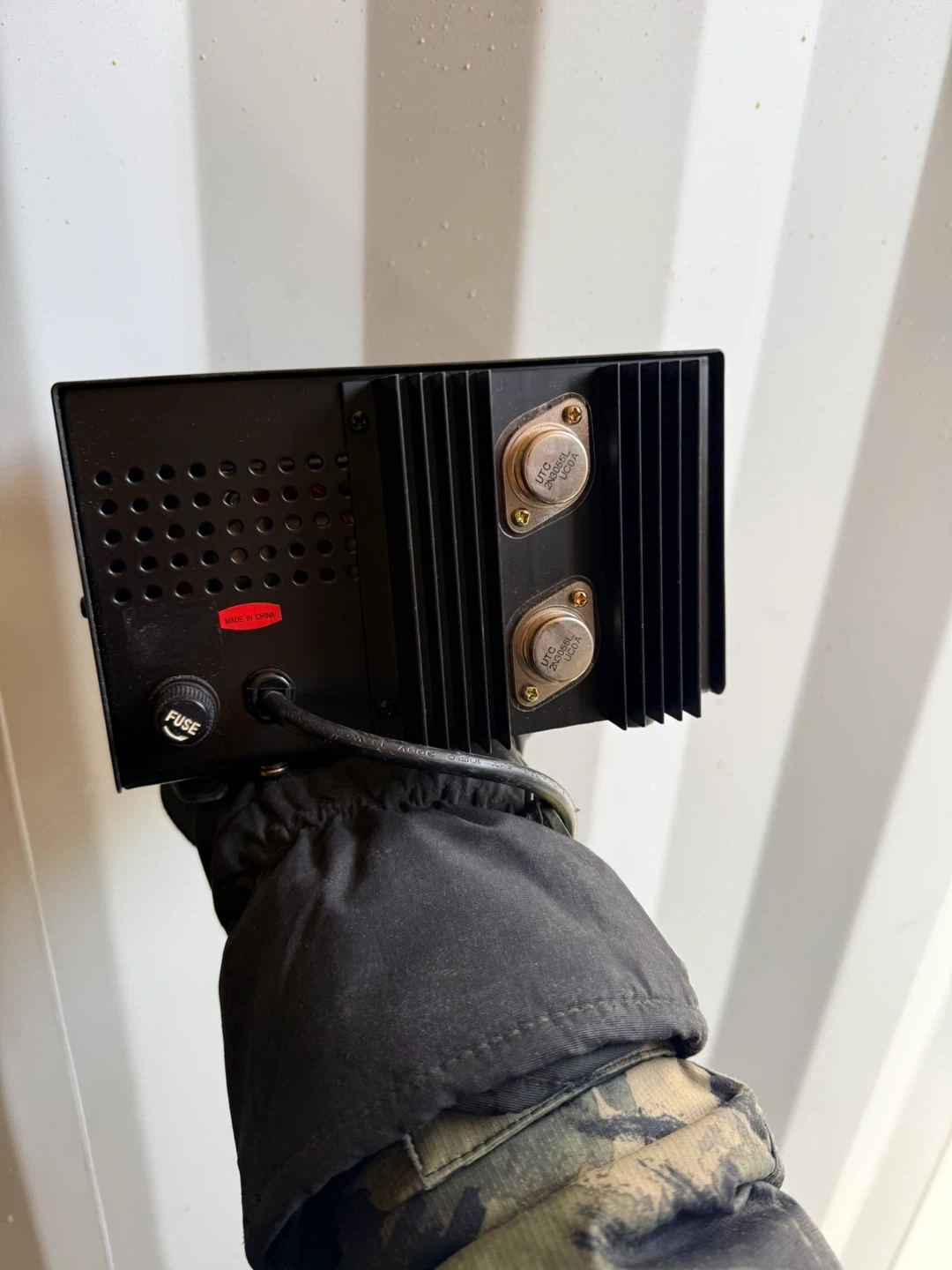 Model PS-15KX. Input: 115V AC 60Hz 250W. Output: 13.8V DC, 10 Amp constant, 12 Amp surge. Includes short circuit and over-temperature protection.