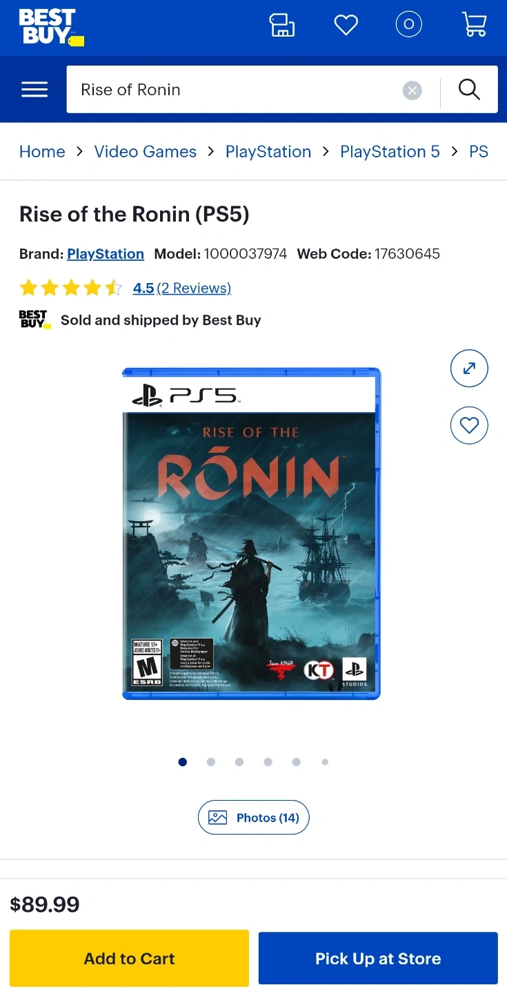 Rise of the Ronin game for PlayStation 5. It's an action-adventure game set in Japan.