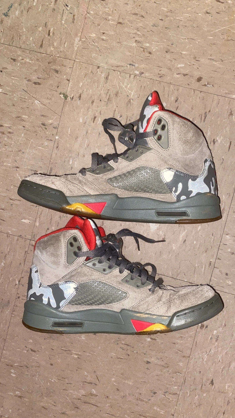 25Selling a pair of Air Jordan 5 Retro Raging Bull sneakers. They show signs of wear, but still have lots of life left. A cool addition to any sneaker collection!