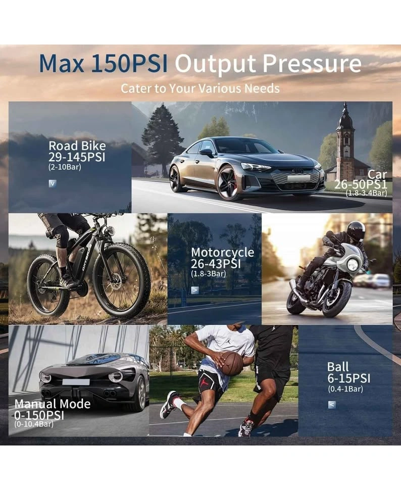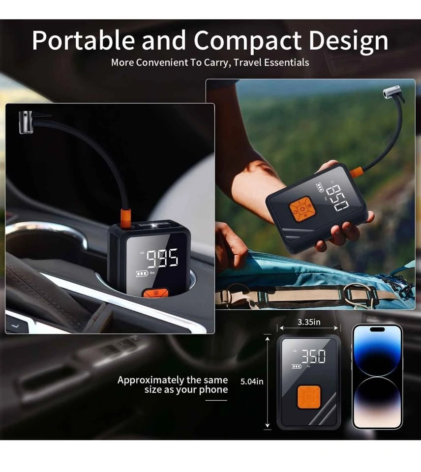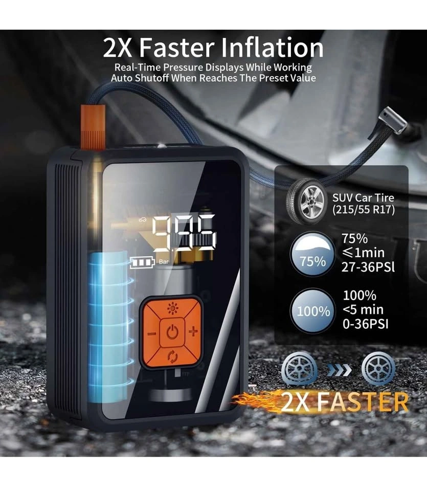22Portable Air Pump for Car Tires, 150 PSI Tire Inflator Cordless with LED Light, Rechargeable Auto Shut-off Air Compressor 2X Fast Inflation Tire Pumps for Car Bike Motorcycle Ball