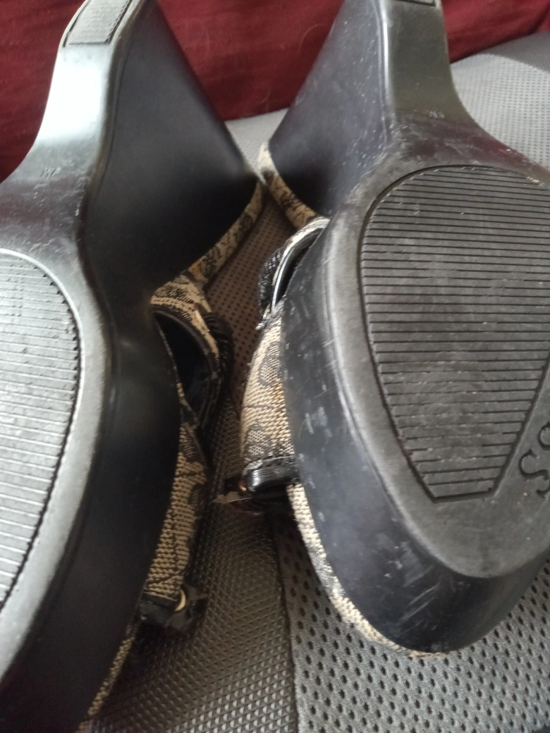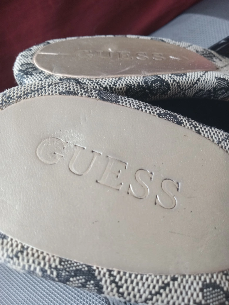 Cute Guess wedge sandals with a unique patterned design and stylish rope detailing. They're in good condition and ready for a new home!