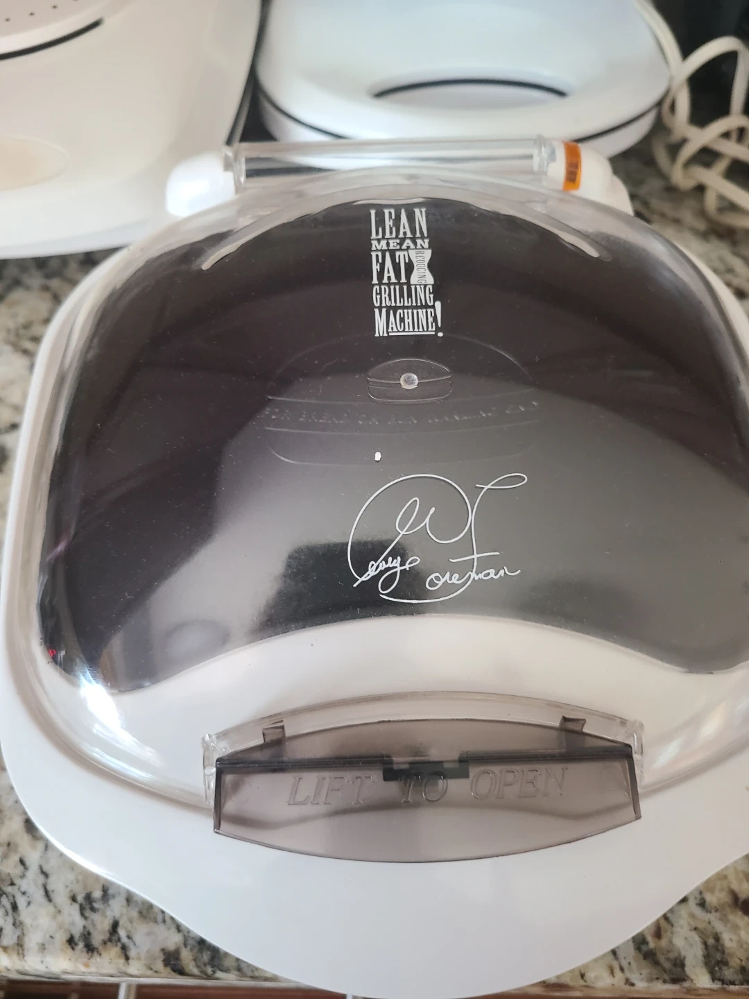 This is the Lean Mean Fat Grilling Machine. It's designed for grilling with a lid that lifts open. Perfect for quick grilling tasks!