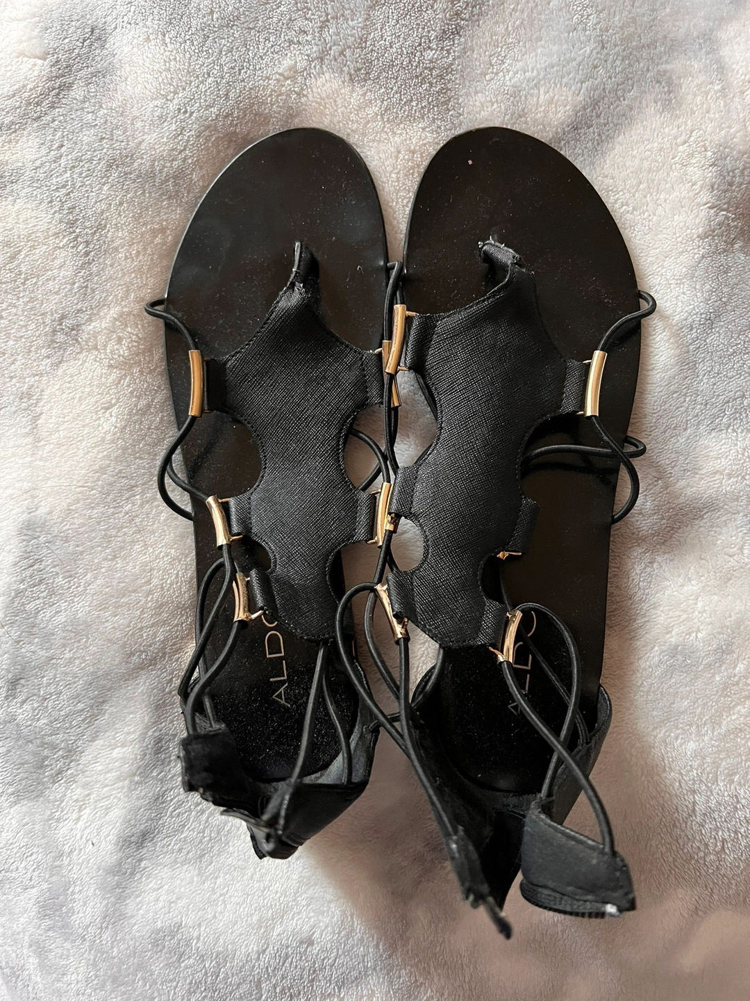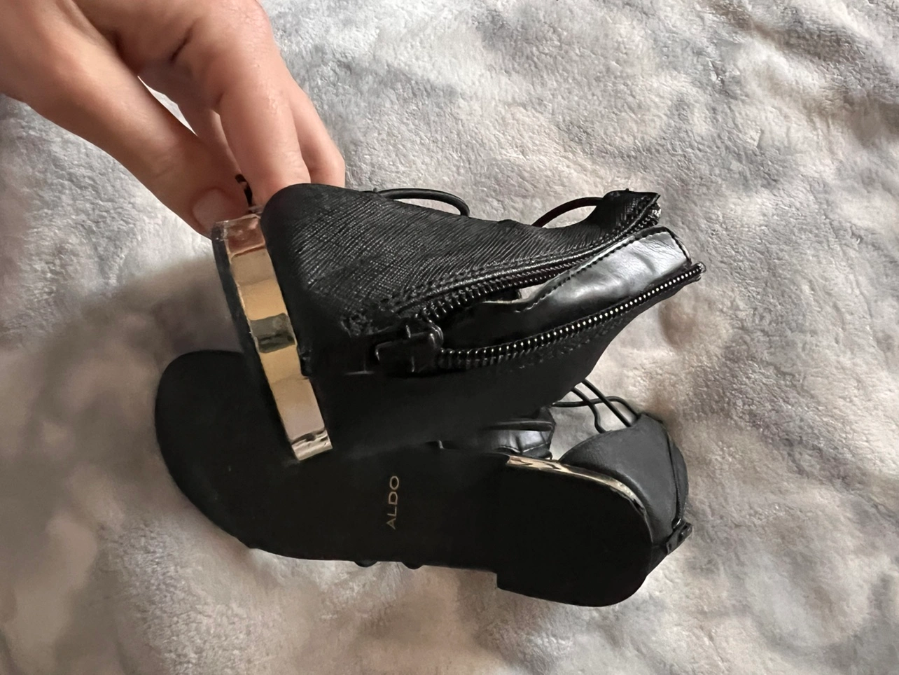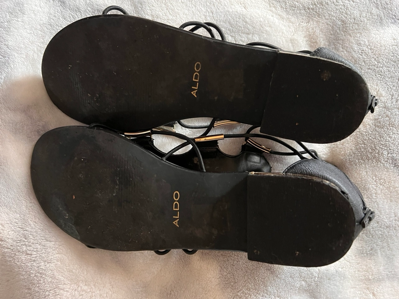 41Aldo Size 8 or 8.5, not sure Toe thong Zipper back Gold accents