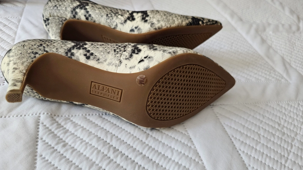 These are a pair of Alfani Step N Flex heels in a snakeskin pattern! They are a size 7M and in great condition