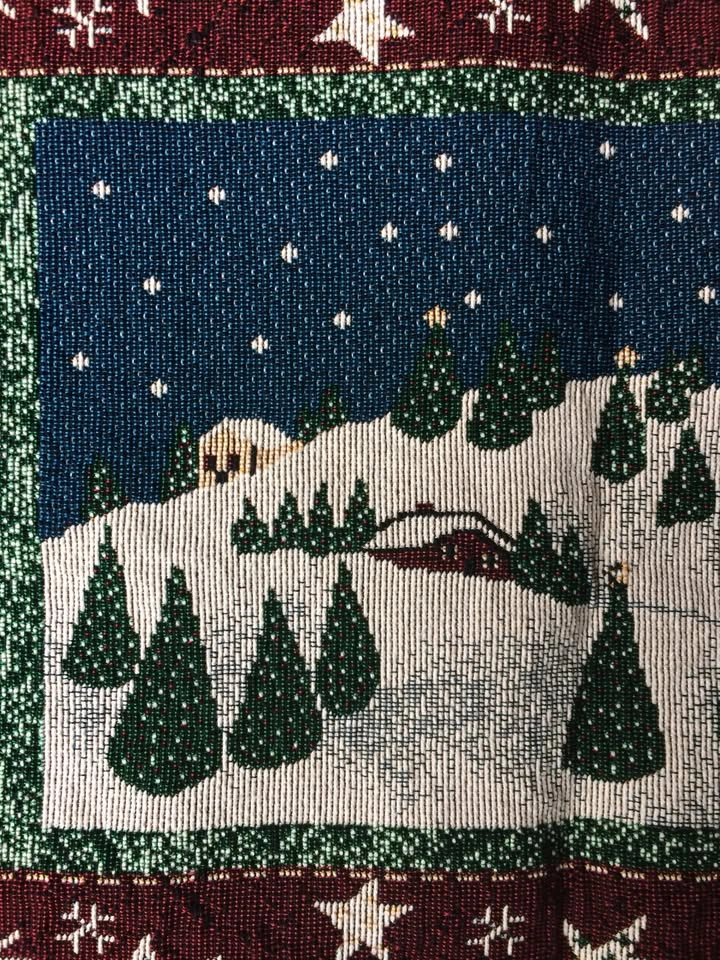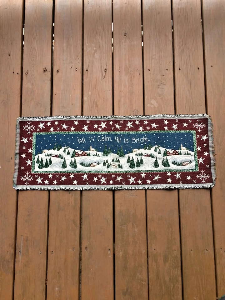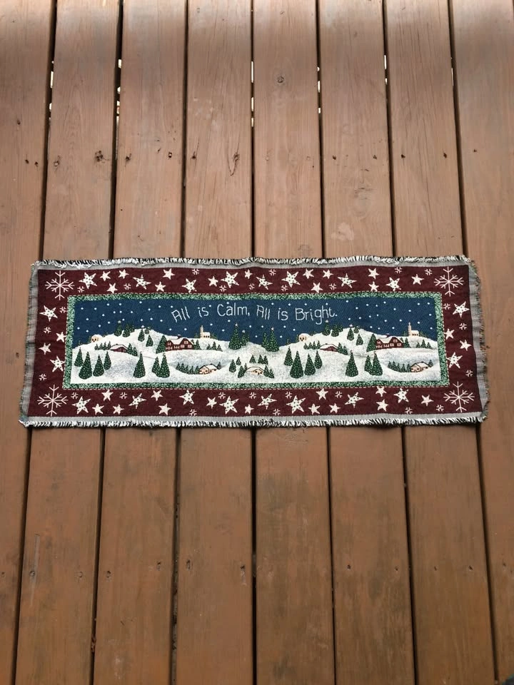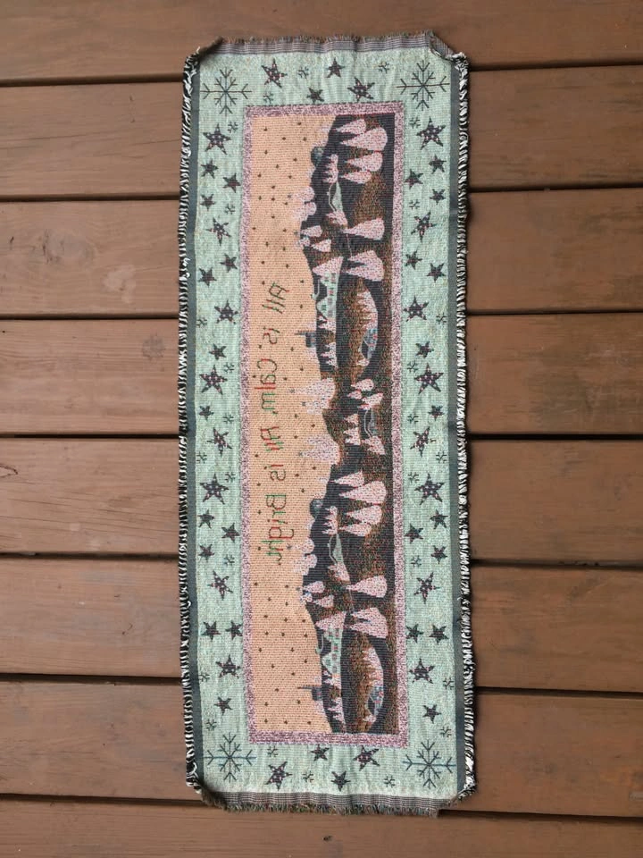 Beautiful table runner is fashioned from sturdy upholstery grade material for heirloom quality. Appears unused in like new condition. Unique piece that is rarely seen online. From a smoke and pet free home. Check out in person before purchasing. Thanks for looking.