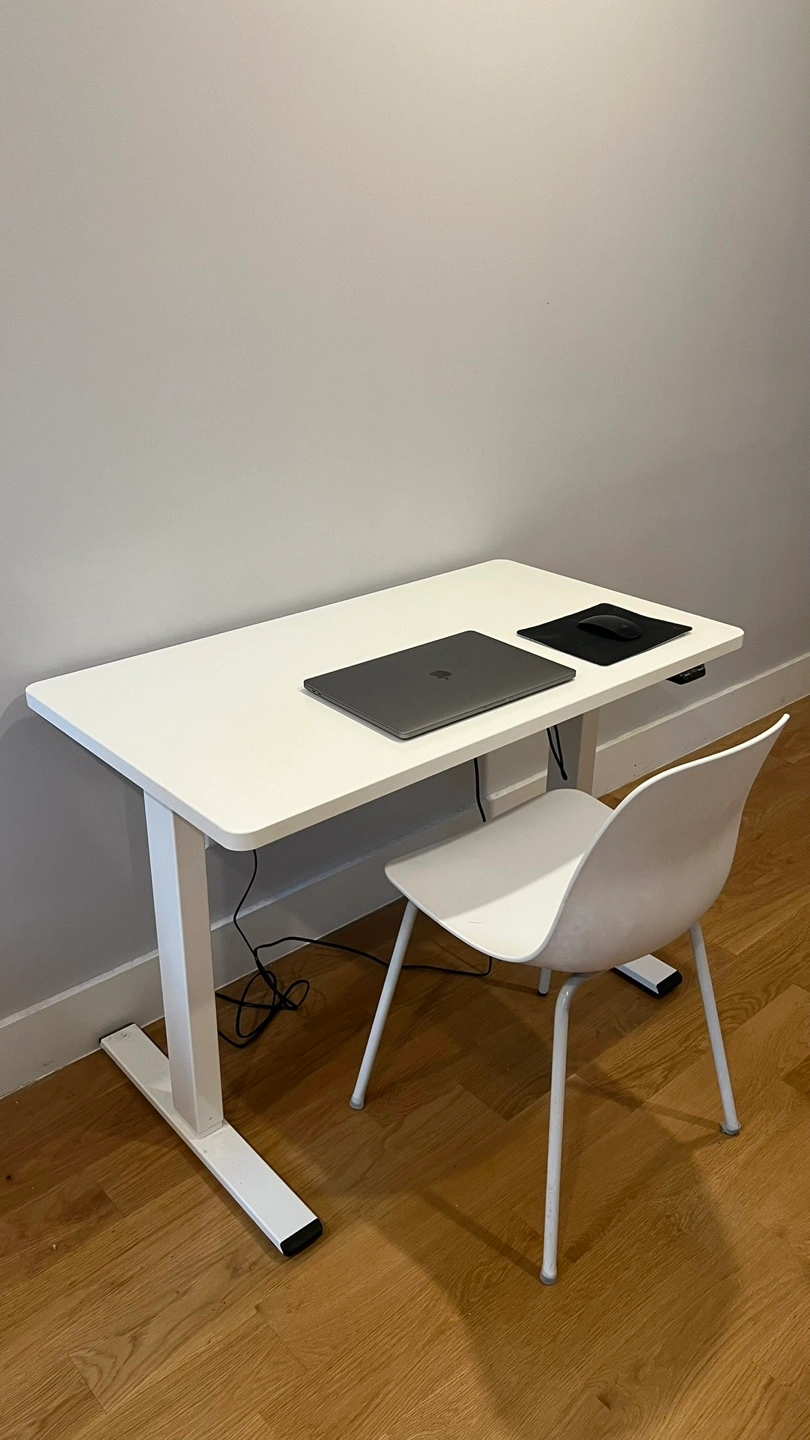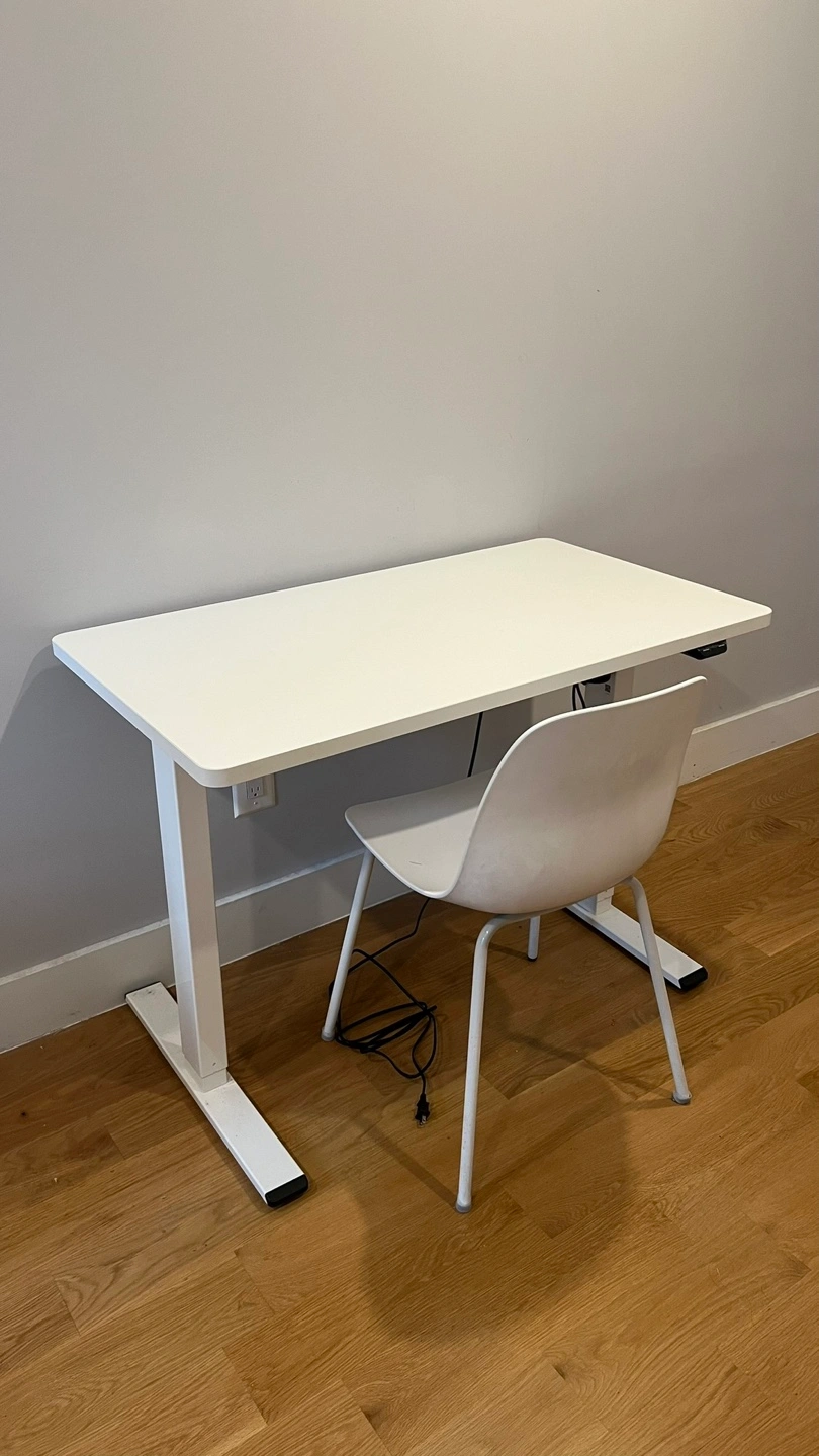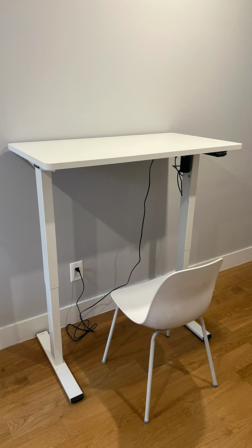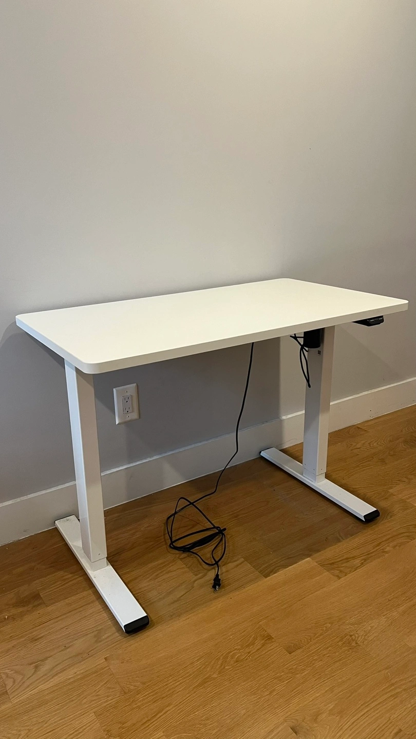 Accepting best offers - Lightly used for 2 years and in excellent condition, this electric height-adjustable desk is perfect for anyone working from home or looking to upgrade their setup. This an ideal option for dual monitors, and for people looking to improve posture while working. Only selling to do move out and can’t take it with me. Pick up only in Greenpoint, Brooklyn. - Desktop Size: 42''X24'' - Desktop Color: White - Desktop Material: Durable chipboard (no scratches or stains) - Keypad: Up/Down Buttons with USB Ports - Frame Color: White