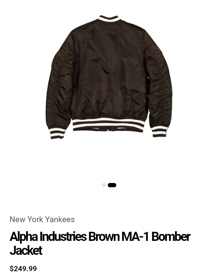 Selling an Alpha Industries MA-1 bomber jacket featuring the New York Yankees! It's a stylish brown color and originally retailed for $249.99