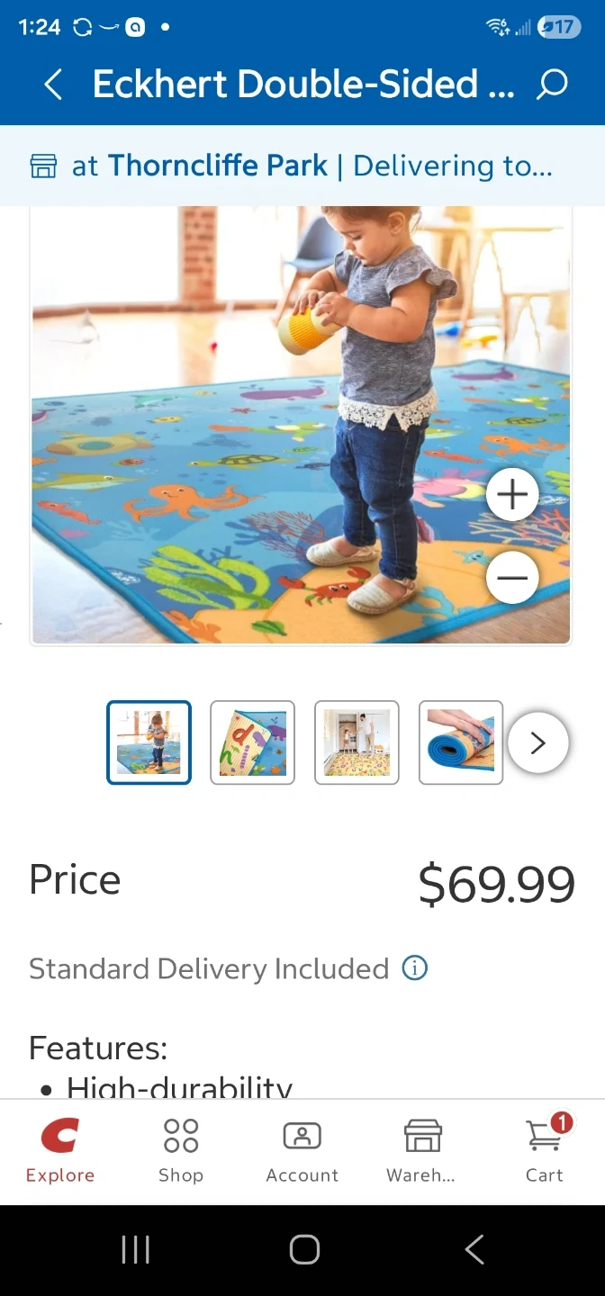 This Eckhert play mat features a fun ocean theme with various sea creatures. It's designed for durability and can be used for playtime or tummy time. It's easily foldable for storage.