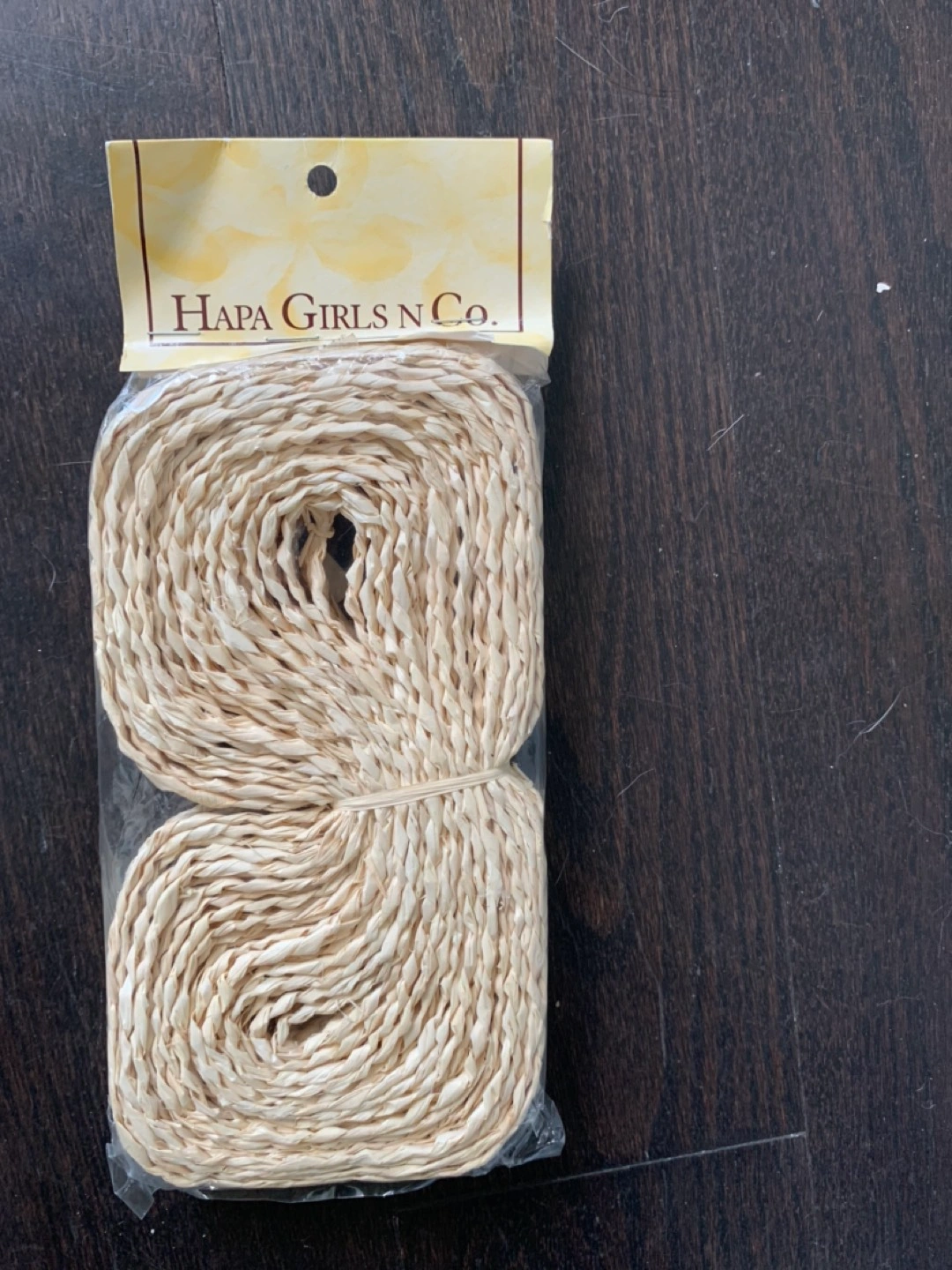 Purchased this from a craft store in Hawaii for $12USD with the intention of making Haku Leis (lei you wear on the head)…obviously never got around to the project. Raffia is a natural material used To make grass skirts and other things. Package is unopened.