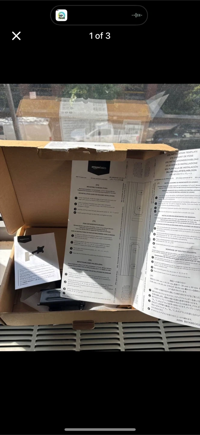 Amazon Basics wall mount kit. Includes instructions and mounting hardware. Ideal for home use. NEVER USED OPENED FOR PICTURE