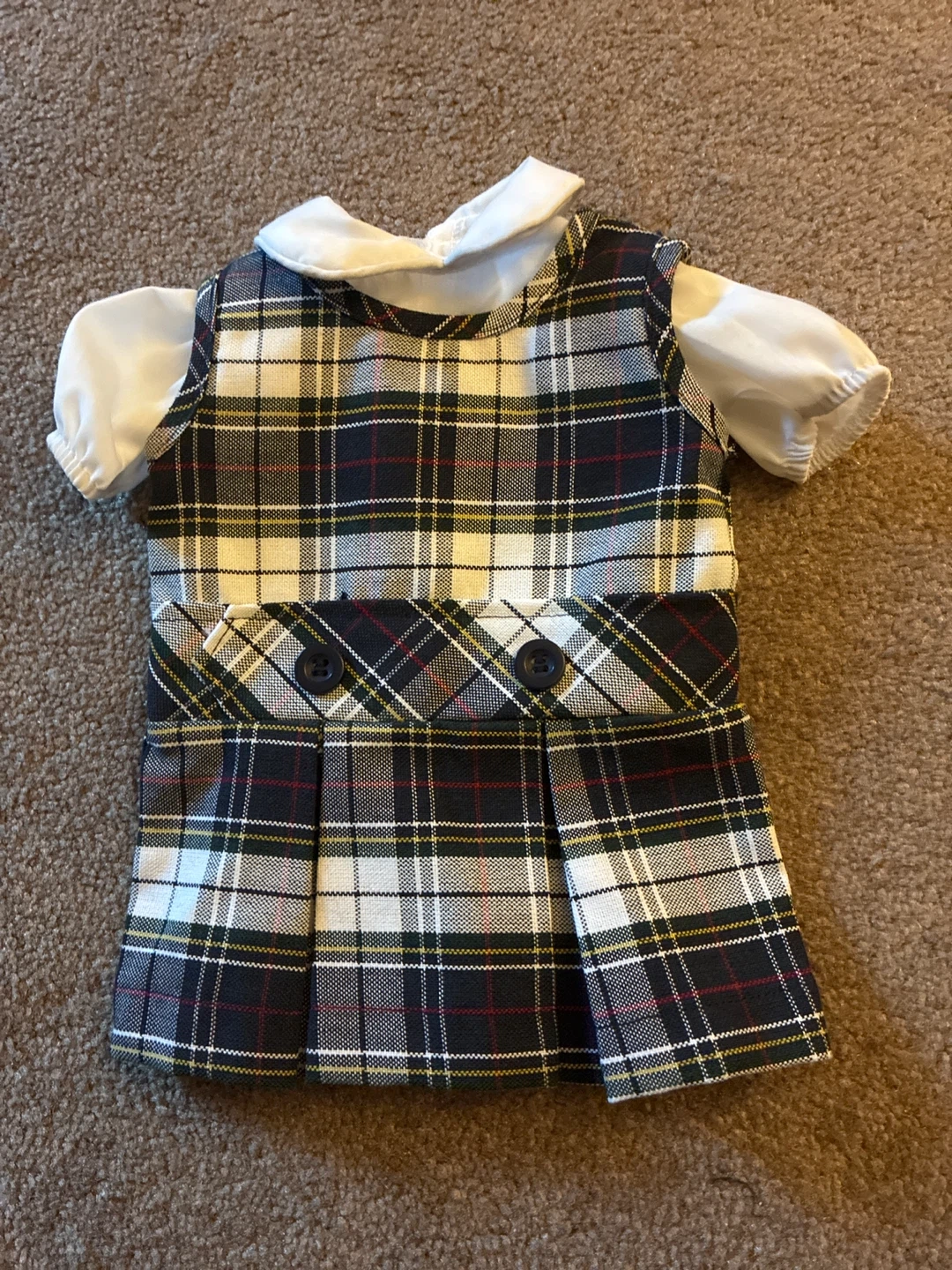 83This is an American Girl doll dress. It has a plaid pattern with white sleeves and collar. It's in great condition!