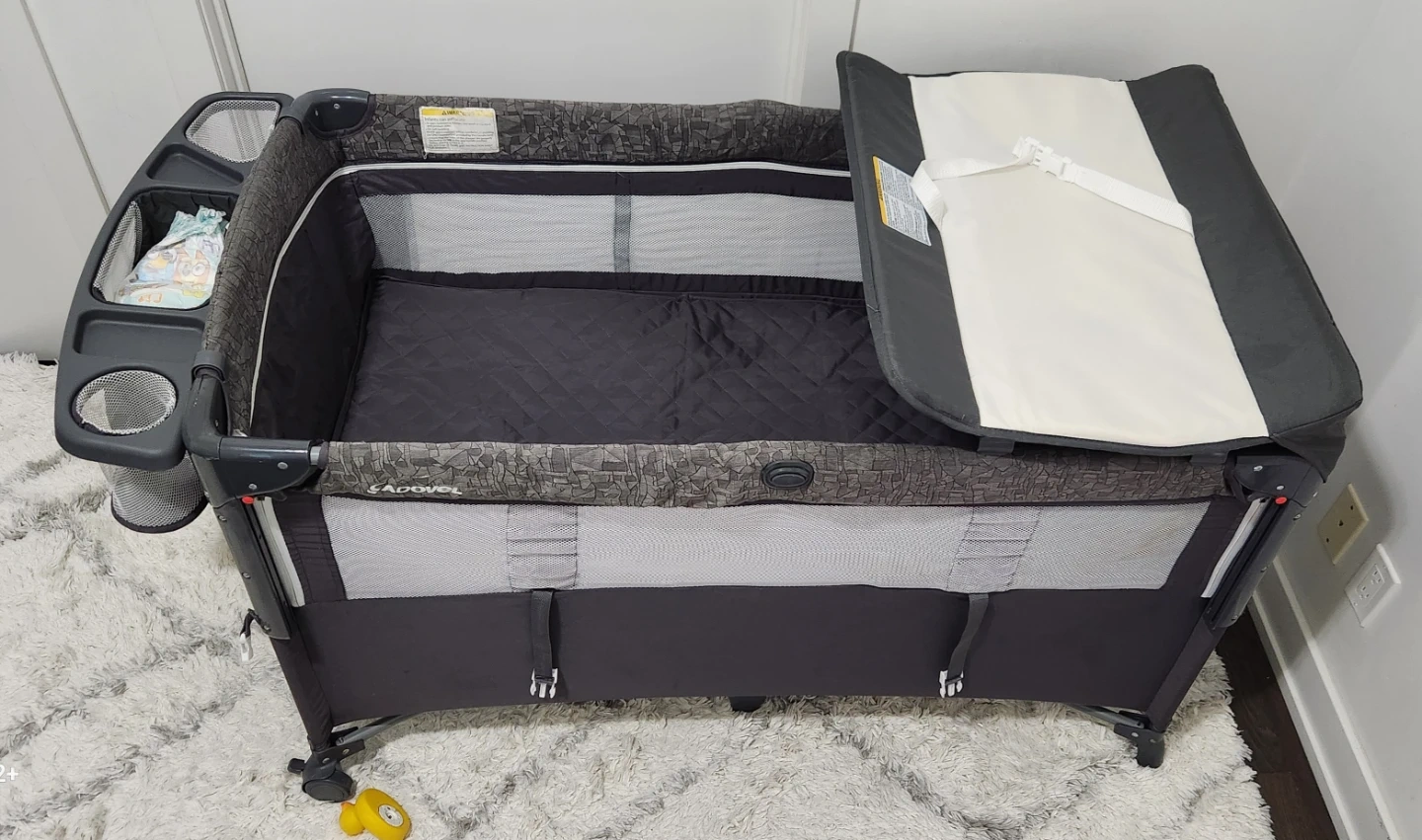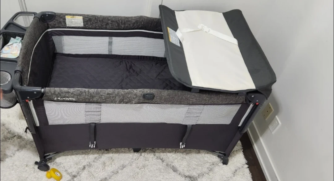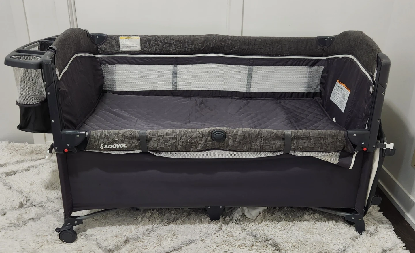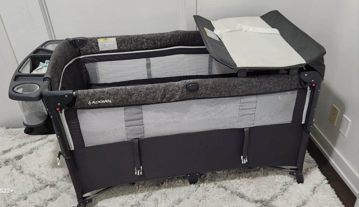Selling a gently used ADOVVEL baby playard. It comes with a convenient changer attachment, making diaper changes a breeze. The playard is in great condition and perfect for newborns and toddlers. It's a safe and comfortable space for your little one to play and sleep! It has a tiny crack if you look further in the pictures.