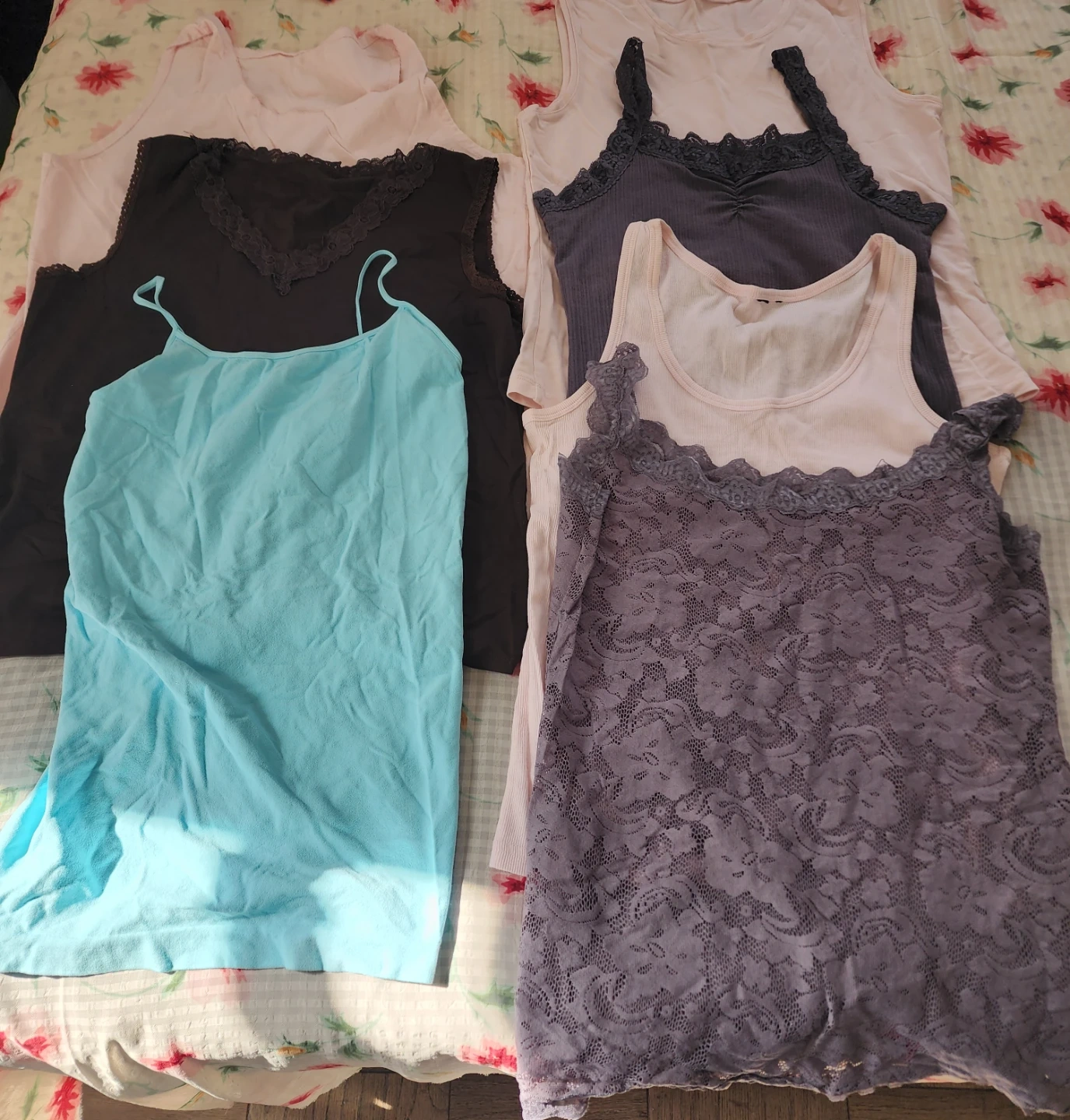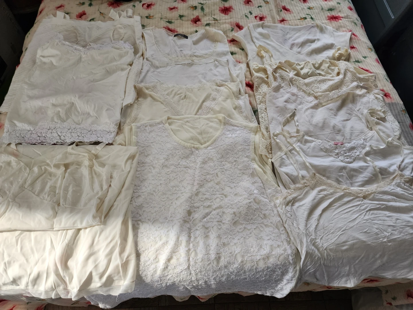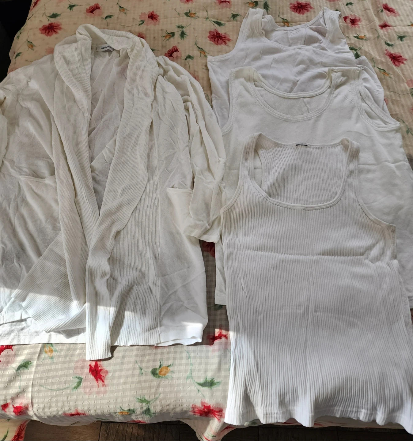 Assorted women's tops and cardigans in white and cream. Includes brands like Emanuel and Calvin Klein Ralph Lauren
