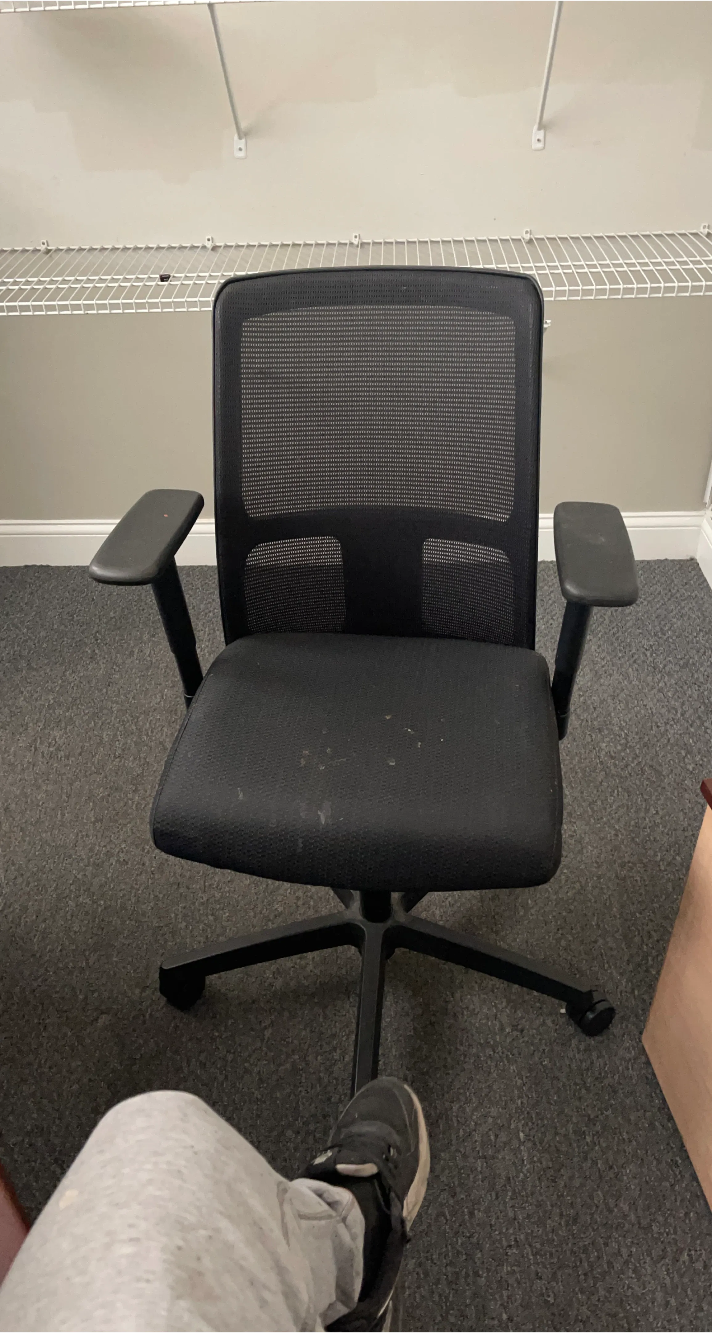 Buy & SellBlack Mesh Office ChairBlack Mesh Office Chair$32Black mesh back office chair with padded seat. Adjustable armrests and rolling base. Some dust on the seat.WHERE TO MEETCheck LocationView MapSELLERStevoBelmont Cragin100 reviews0 chats·0 favorites·5 viewsSEND CHAT TO SELLERHi Stevo! I’m interested in your listing.Hi Stevo! I’m interested in your listing.Get the Karrot app to chatSign In to chat