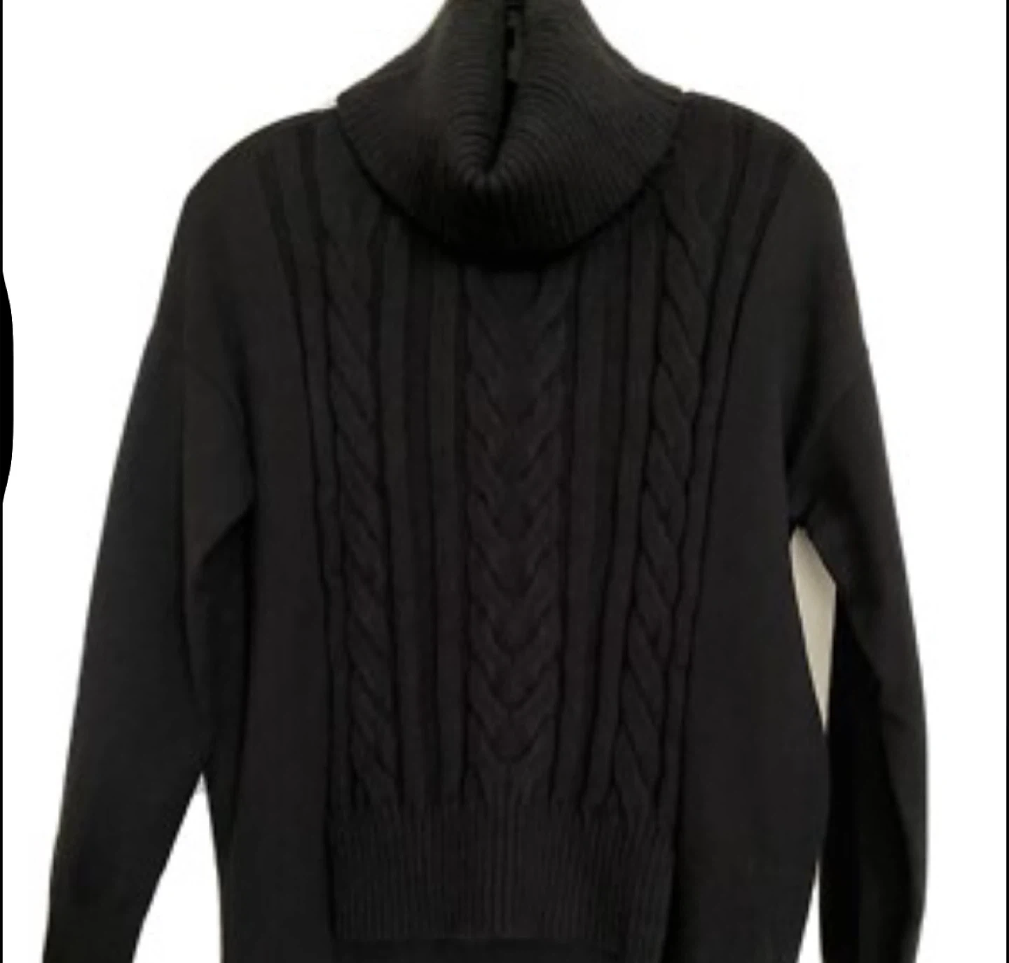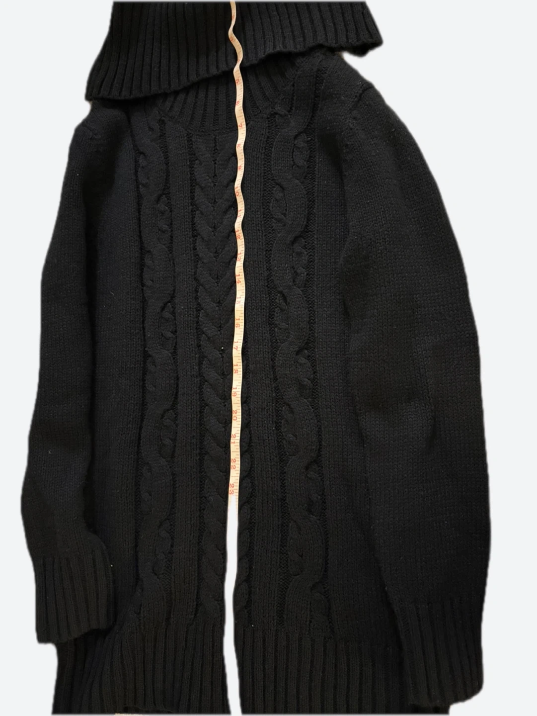 Wool Cozy black cable knit cardigan, perfect for layering! It’s a size small and in great condition. The material is soft and warm, ideal for chilly days. The cable knit design adds a classic touch to any outfit