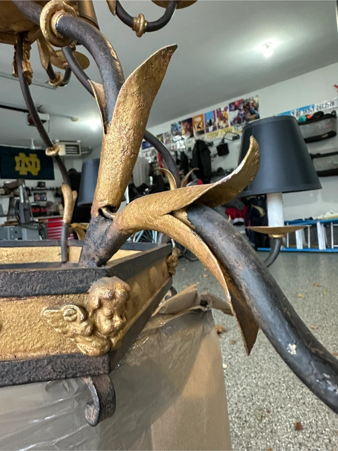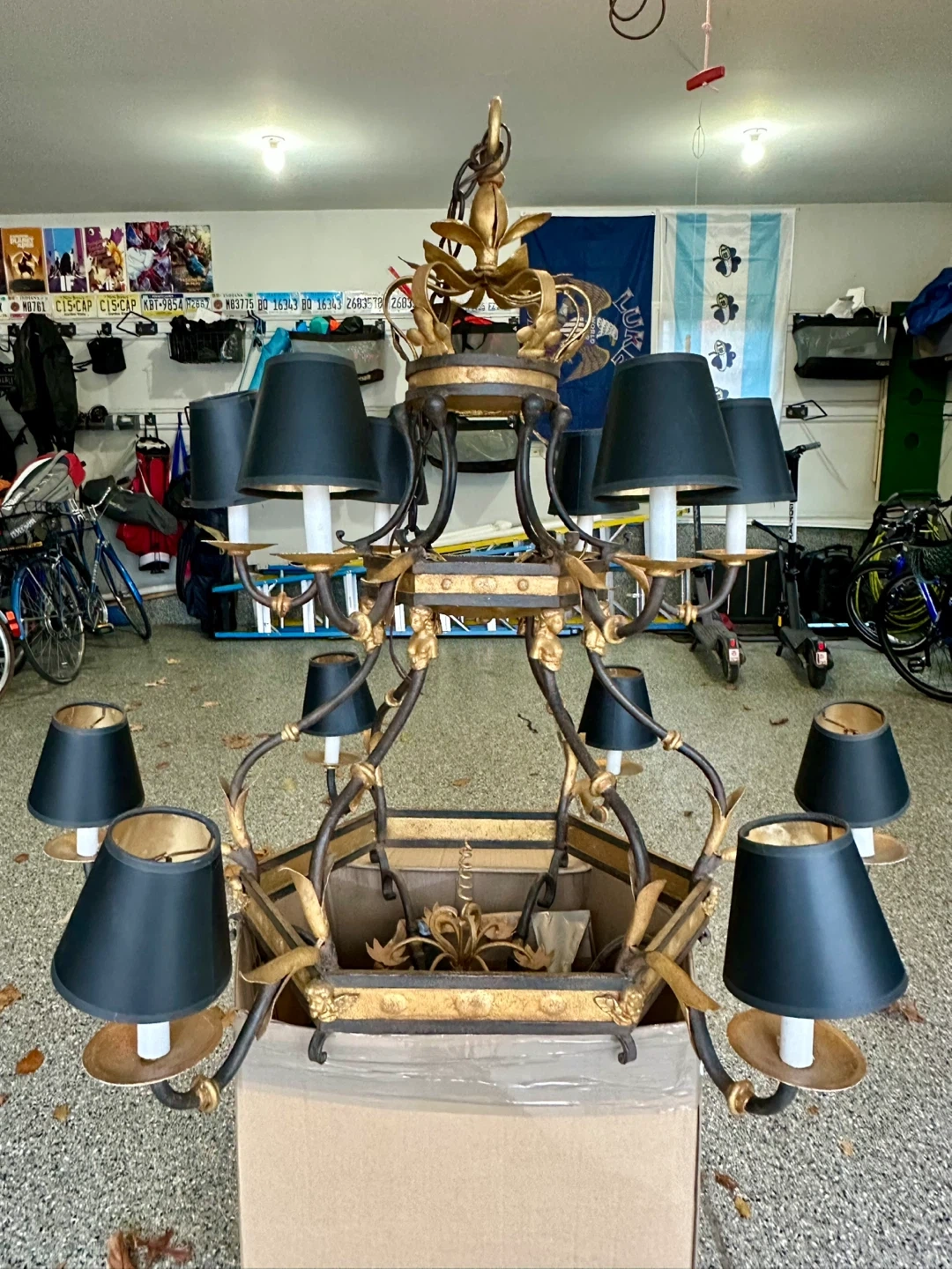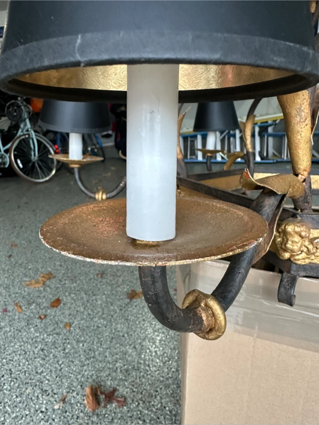 Beautiful, unique black and gold finish. It features decorative gold accents and black shades. It comes with all the components pictured and is ready to add a touch of elegance to any room!
