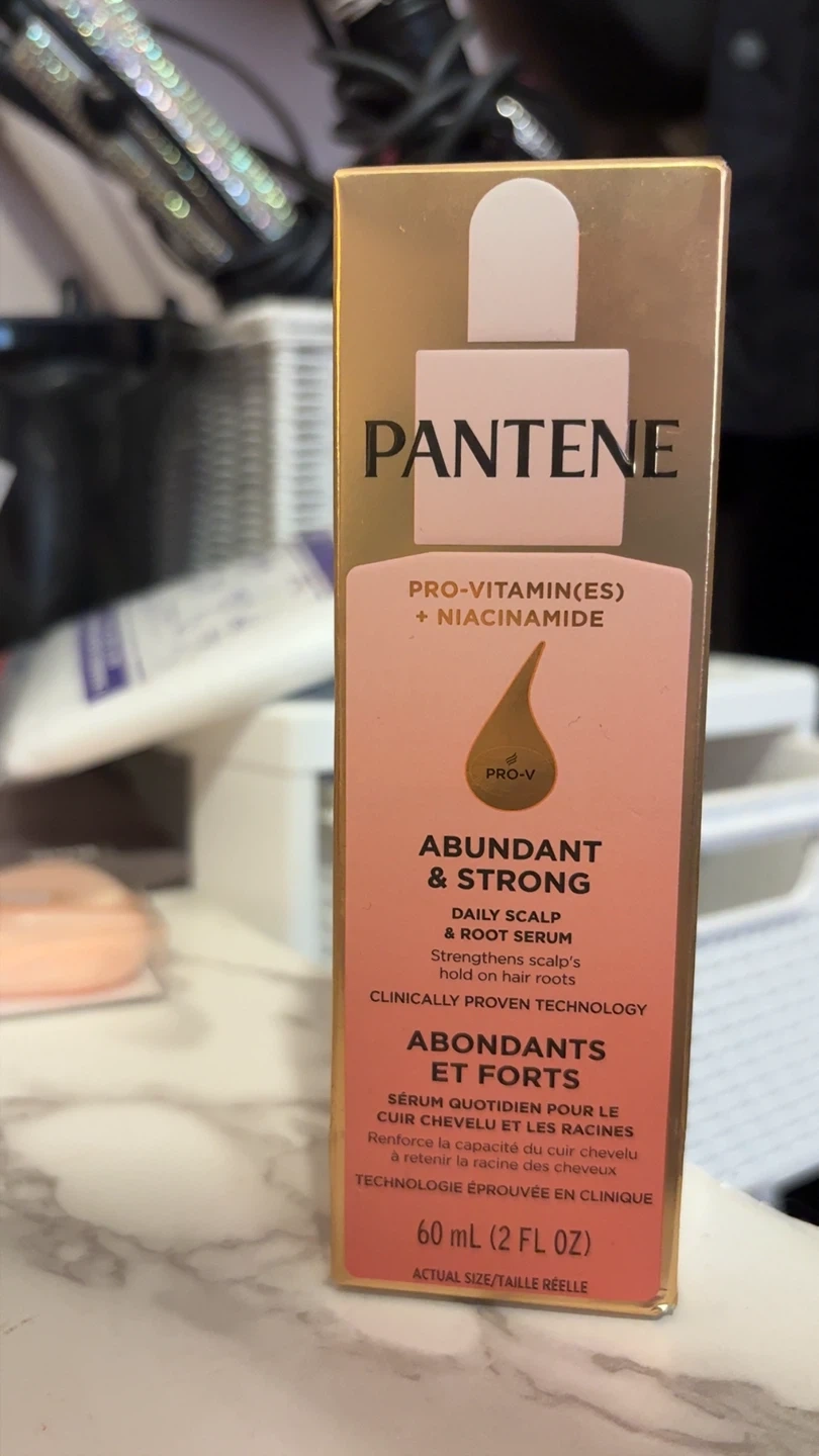 Pantene Abundant & Strong Daily Scalp & Root Serum with Pro-Vitamin(es) and Niacinamide. It strengthens the scalp's hold on hair roots. 60 mL (2 FL OZ).