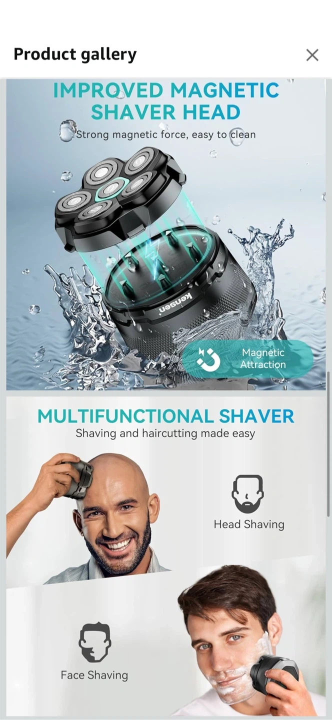 - Improved magnetic shaver head: Strong magnetic force, easy to clean
