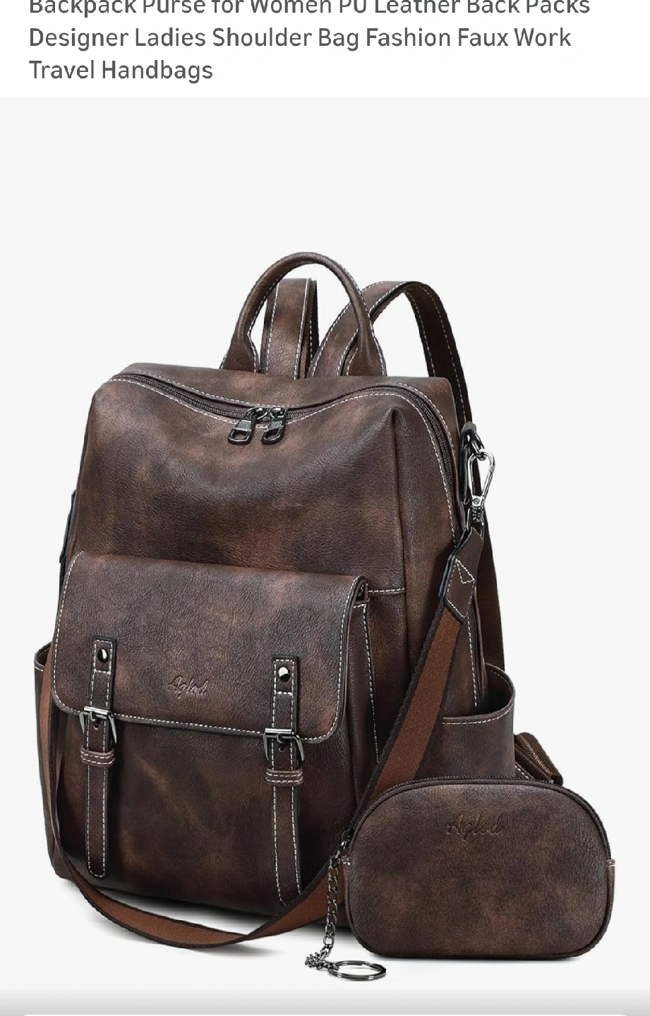 Selling a stylish Aoled brown faux leather backpack purse! This designer ladies shoulder bag is perfect for fashion, work, or travel. It's in great condition and ready for a new owner!