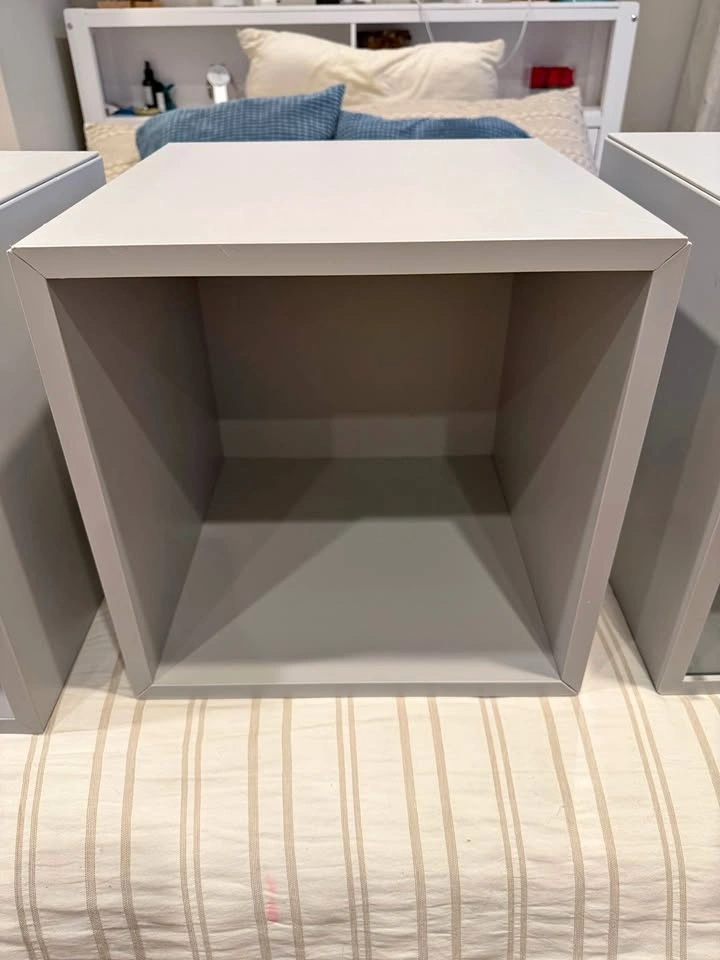 IKEA Eket Cabinet. Light gray. I also have another one available. Same color and size, with glass door. Measurements: Width: 13 3/4 ", Depth: 13 3/4 ", Height: 13 3/4 ". Max load/shelf: 15 lb. Must be completed with EKET suspension rail if you choose to mount the frame on the wall. This frame requires 1 suspension rail, 13¾" long.