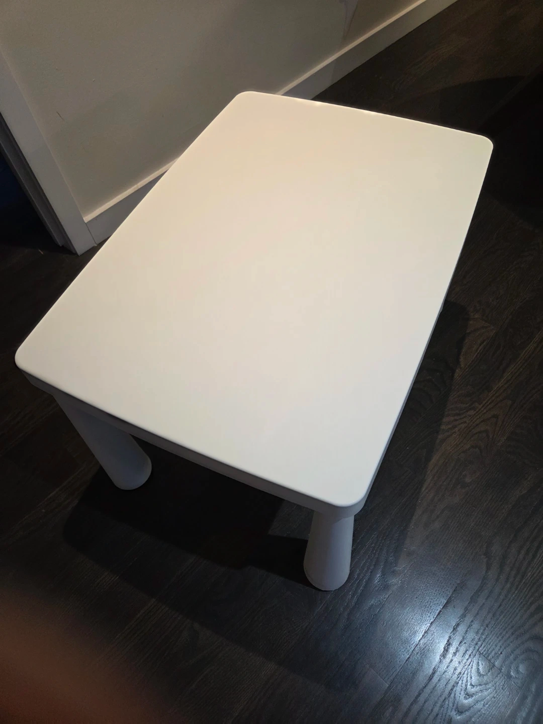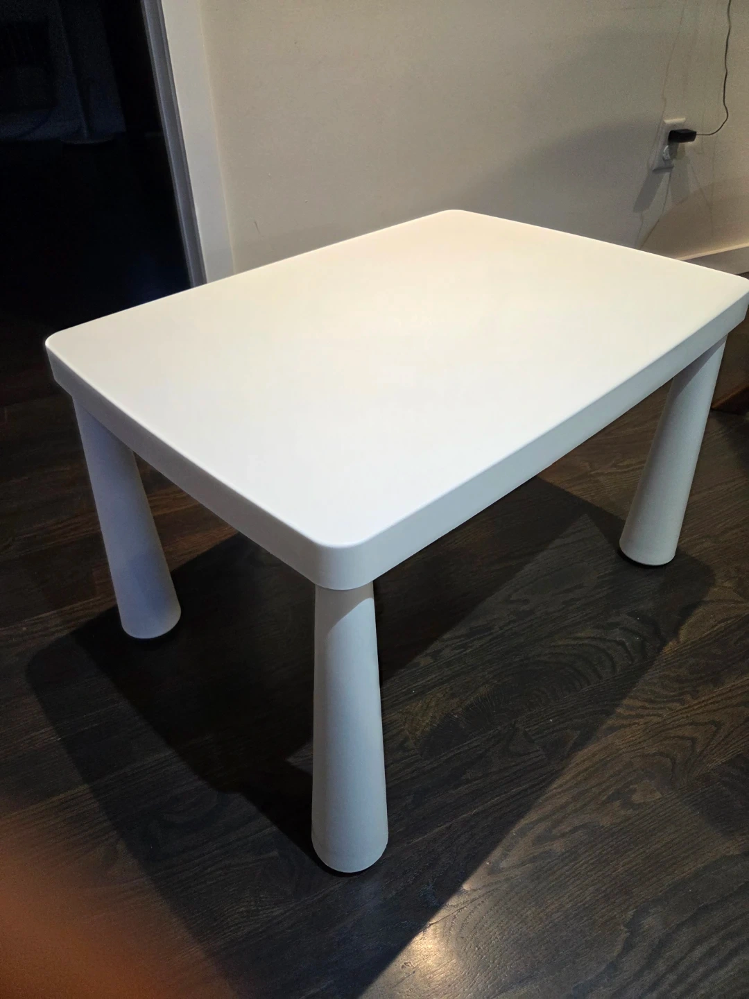 Selling a white IKEA Mammut children's table! It's perfect for indoor or outdoor use. The table is 30 3/8x21 5/8 ".