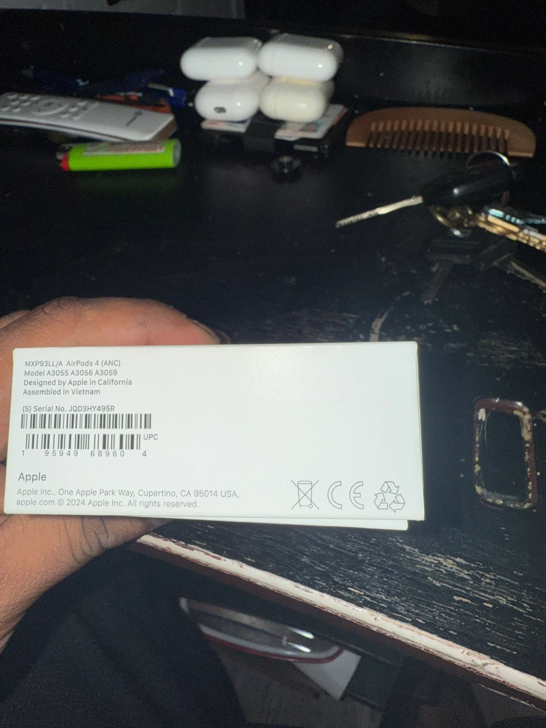 60Selling a pair of Apple AirPods 4 (ANC), model number MXP93LL/A. Comes with the box. Designed by Apple in California and assembled in Vietnam Also have 4 other airpods with no box all of these airpods are together not selling separately.
