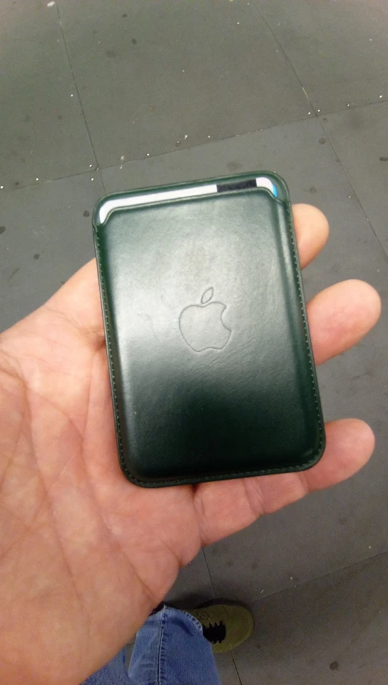 Selling a green leather wallet from Apple. It's in great condition and ready for a new owner! The wallet has a sleek design and is perfect for carrying your essential cards. Feel free to reach out if you're interested