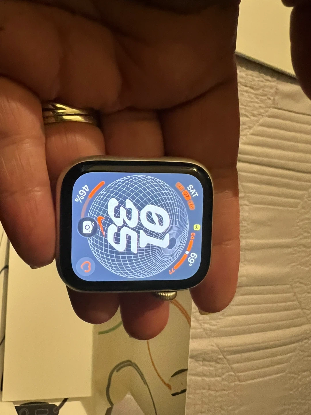 Selling an Apple Watch SE in Starlight color, 44mm size. It's in like new condition and comes with the original box and included components. Perfect for tracking your fitness or staying connected!