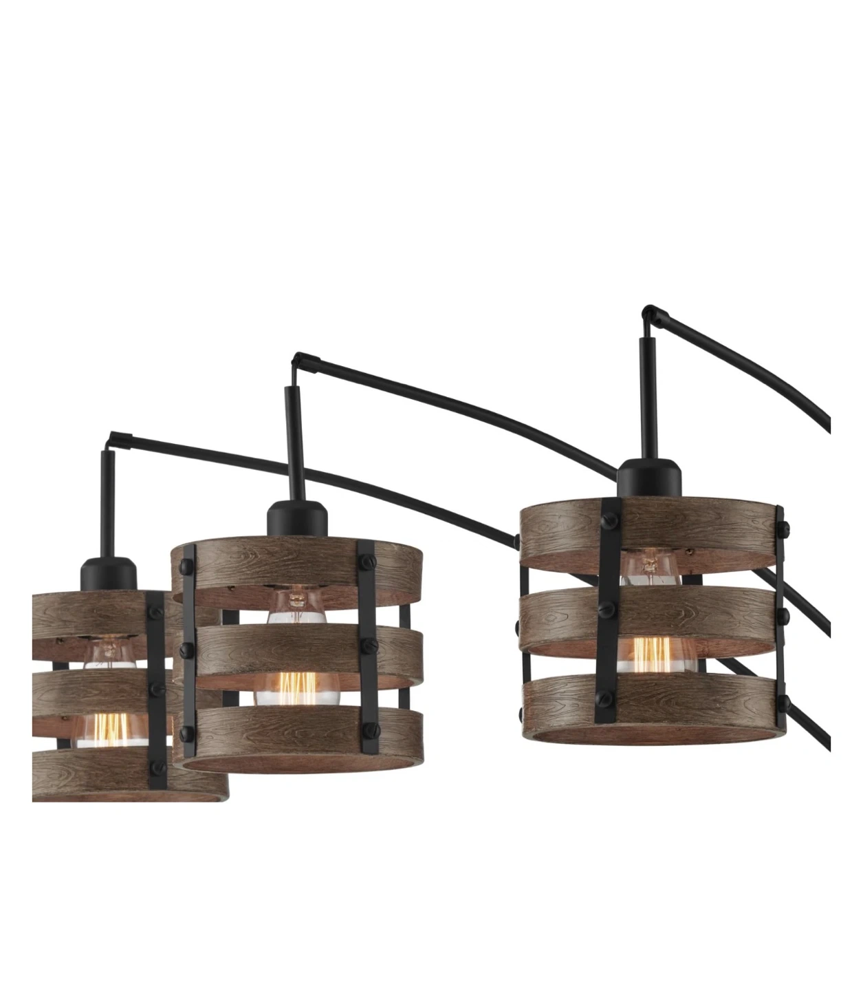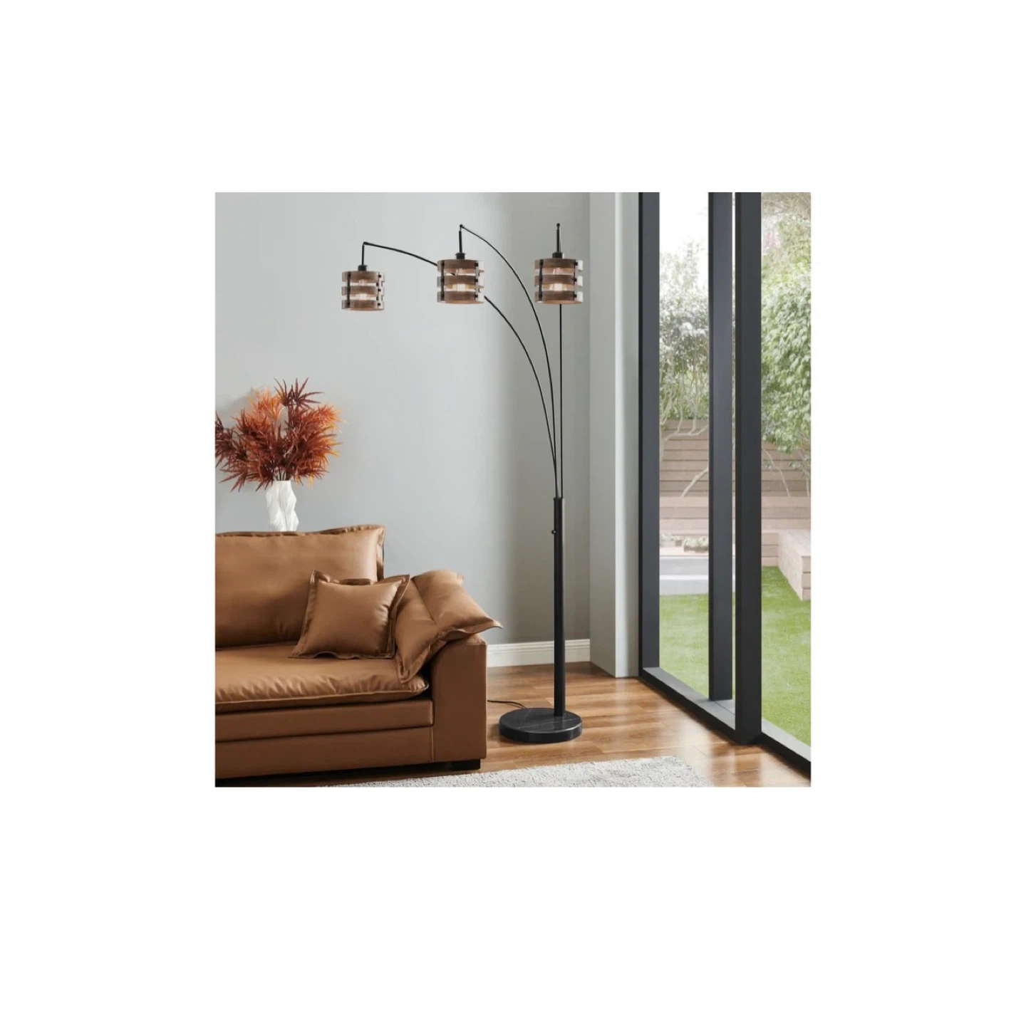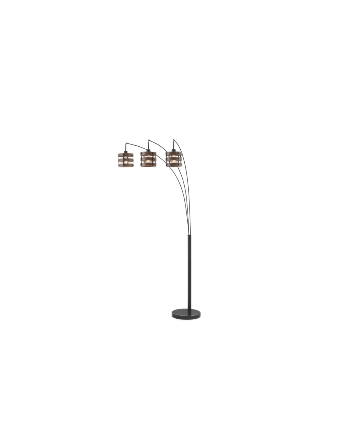 3-Light Arc Floor Lamp with Wood-Tone Accents